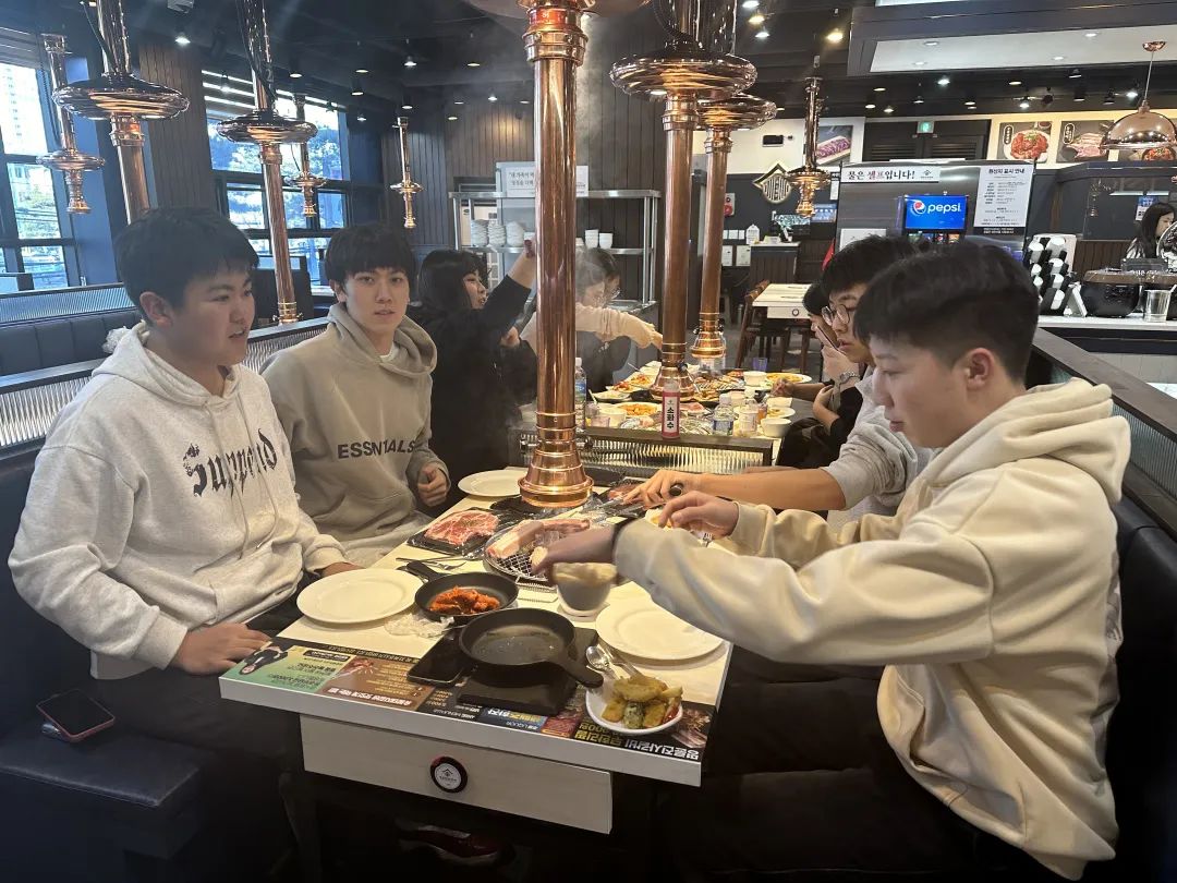首尔时间16点30分,研学旅行团入住南首尔大学椰林生活1号馆,研学旅行团组织了抵达后第一次安全教育会,孙效彬主任和冷蔚主任分别针对在韩期间安全注意事项、研学日程安排进行解读并提出要求。同学们品尝了韩国特色晚餐。