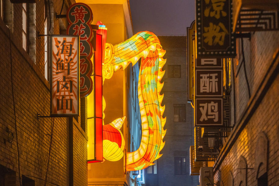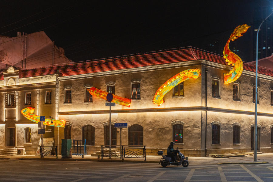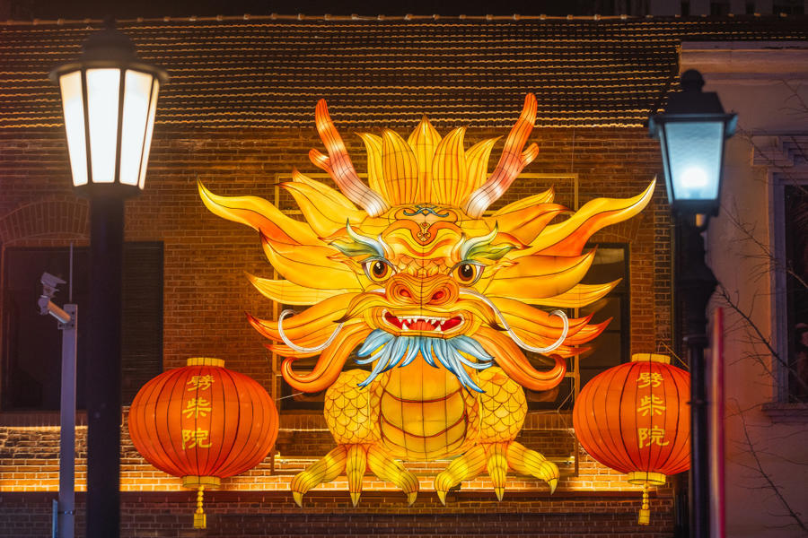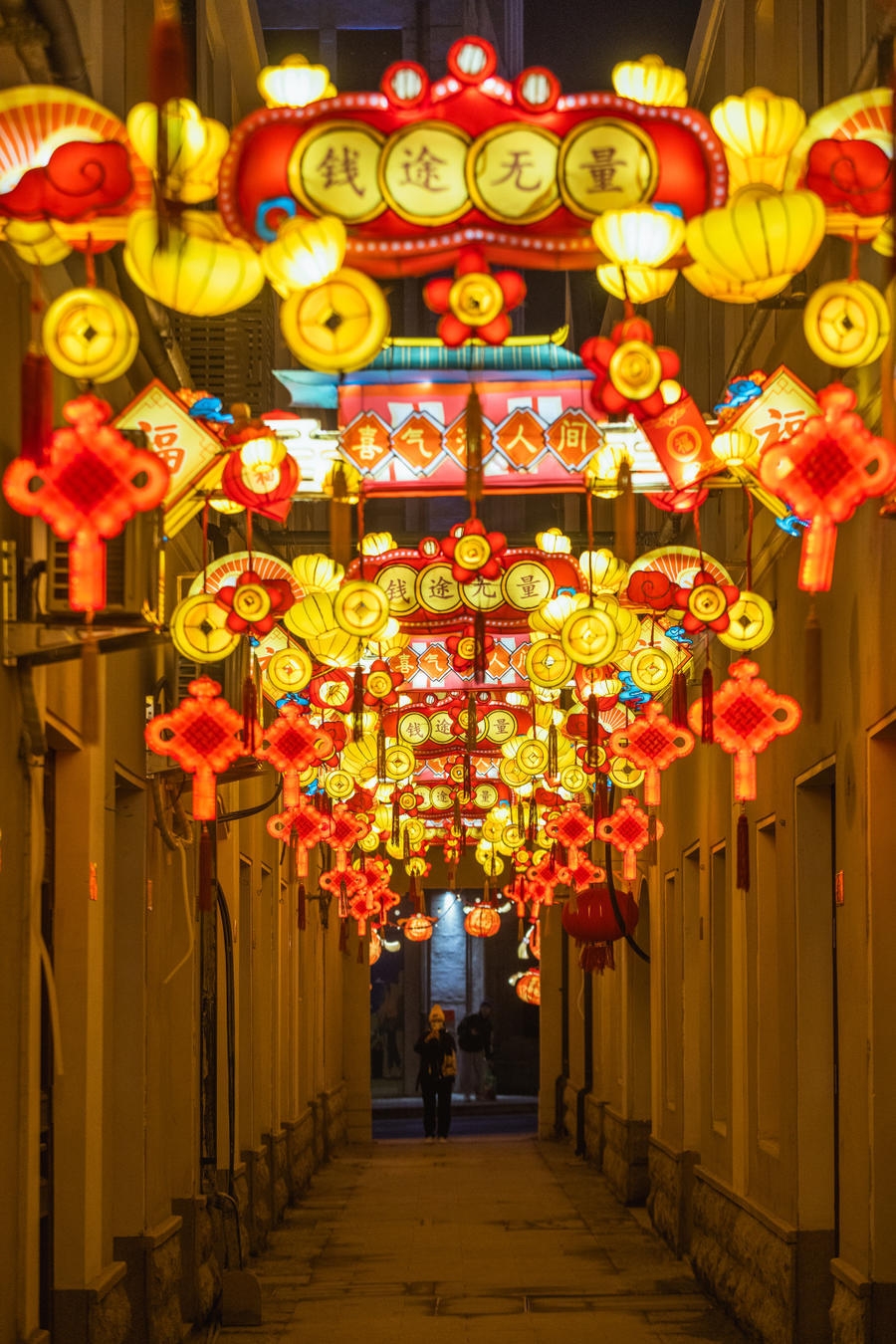 春节临近,中山路劈柴院门前,喜庆的龙头花灯在夜色中点亮,为老城区营造出浓浓的迎新春氛围。