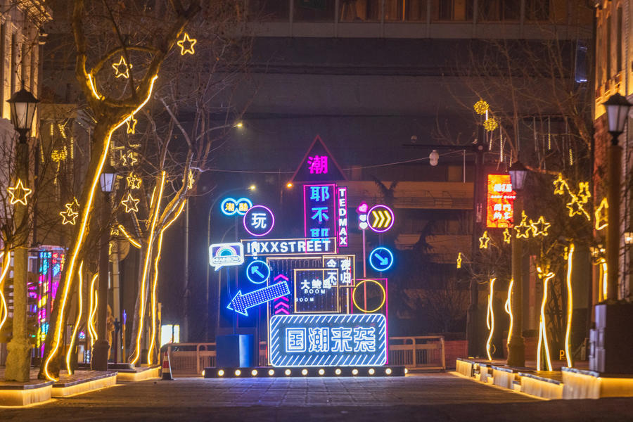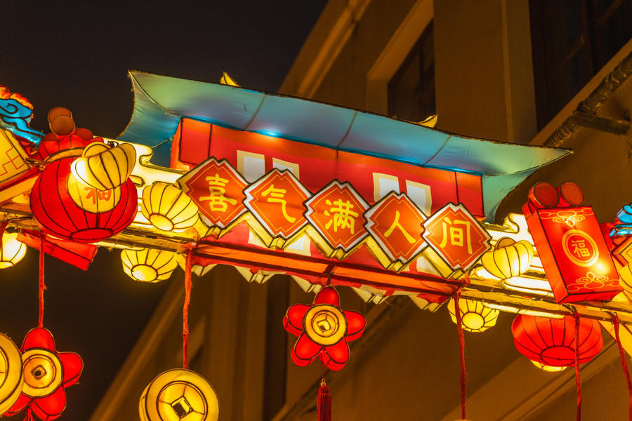 大鲍岛文化休闲街区夜晚氛围喜庆
