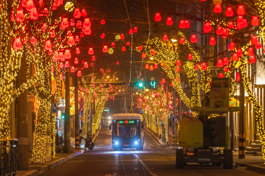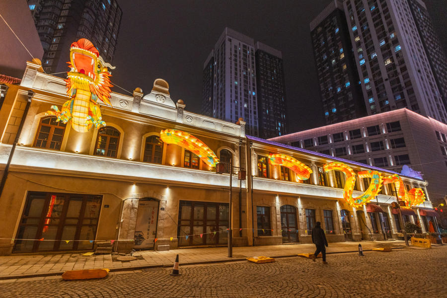 随着龙年春节的日益临近,岛城的“年味”也日渐浓厚。近期,老城区内一片红红火火,工作人员正在加紧布置街区,营造喜庆的春节氛围。