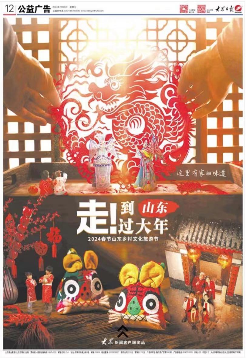 过了腊八就是年!春节临近,年味越来越浓。红红火火的窗花贴起来,团团圆圆的灯笼挂起来,大集上熙熙攘攘,年味从大众日报今天整版的海报里溢出来。