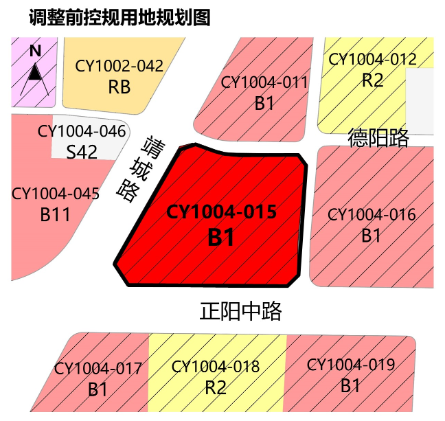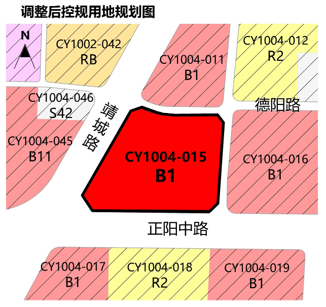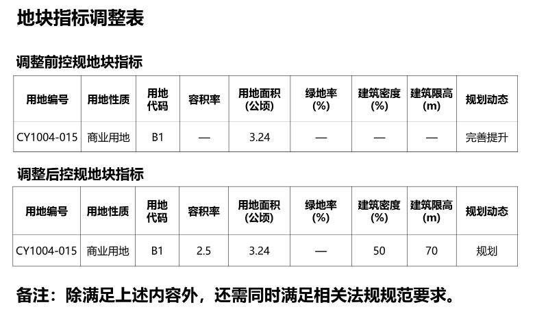 此次调整,根据市政府批复的《城阳区城阳街道南部片区控制性详细规划》,该地块用地性质为商业用地,未对容积率进行明确表述,规划动态为完善提升;控规调整后,商业用地性质不变,容积率由完善提升调整为2.5以下。