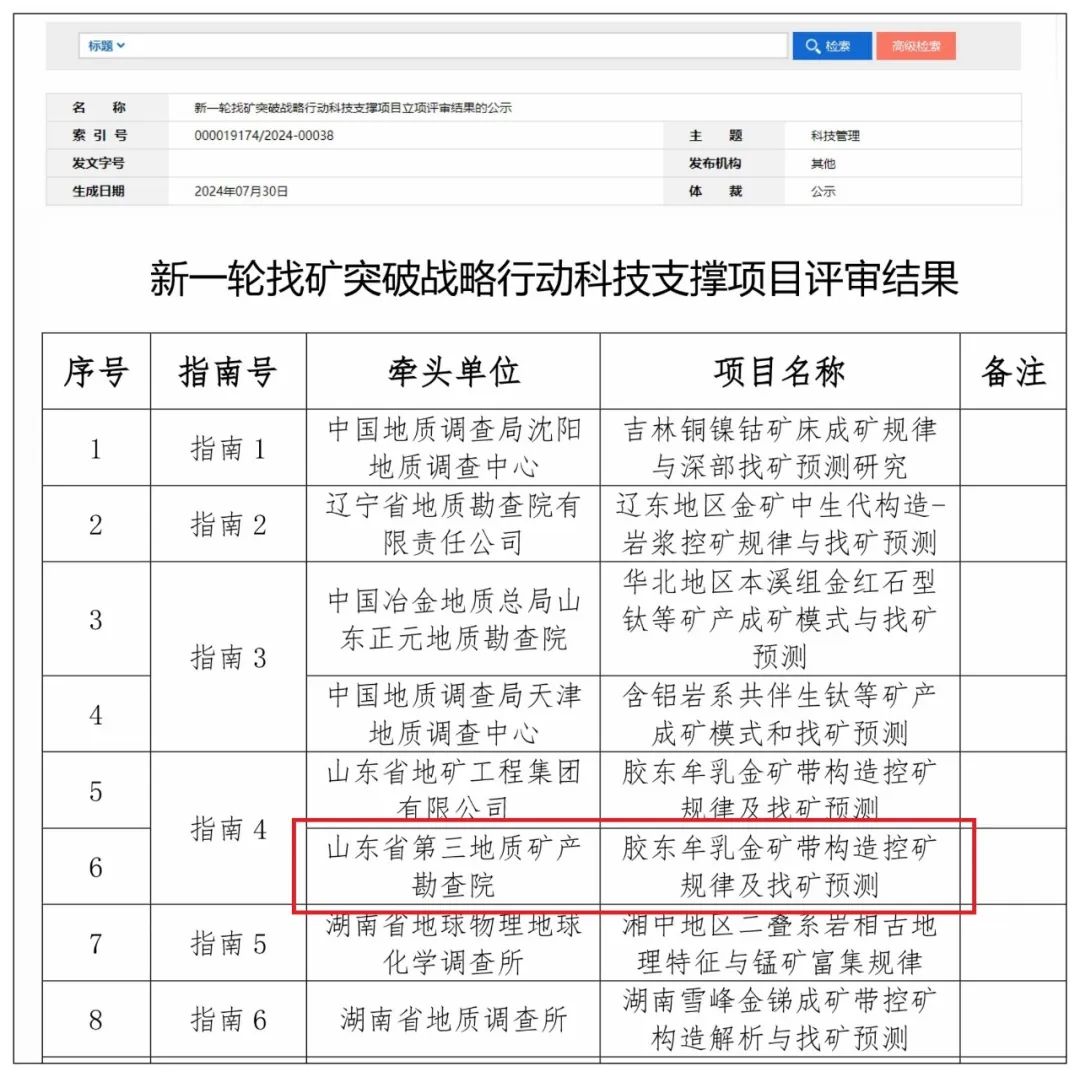 喜讯!省地矿局三院成功获批自然资源部新一轮找矿突破战略行动科技支撑项目