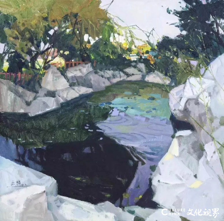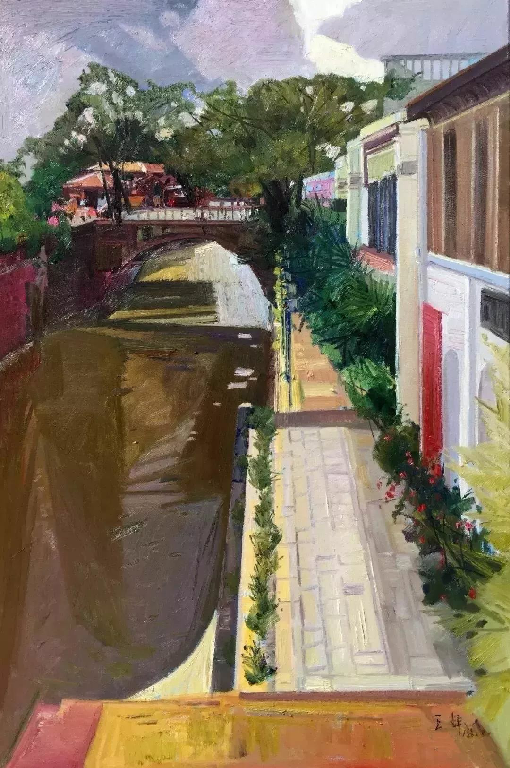 王辉先生在八十年代中期已经崭露头角,并一直活跃在画坛,能画能文博览群书。因此,他的阅历和天赋都使得他思想的架构超过一般的同代,使得他关注的问题也不限于艺术专业的领域。他的油画风景从细节的生动到整体的感人,从叙述的具体到抒情的单纯,从景物的刻画到笔墨的经营,他年年写生,处处用心,一路没有停顿地锤炼自己作品的艺术品质。
