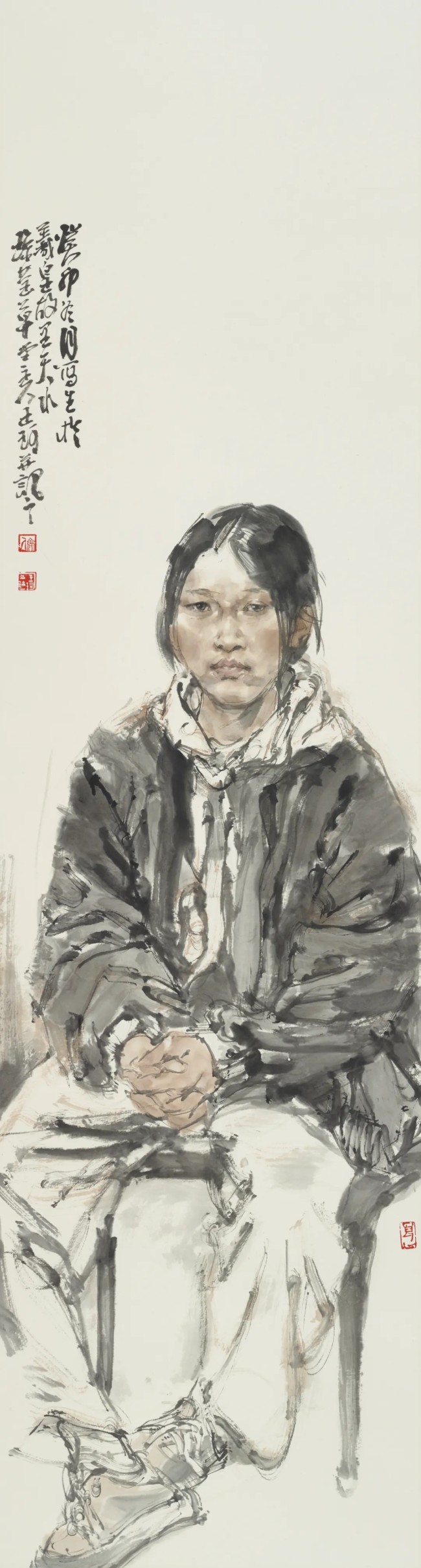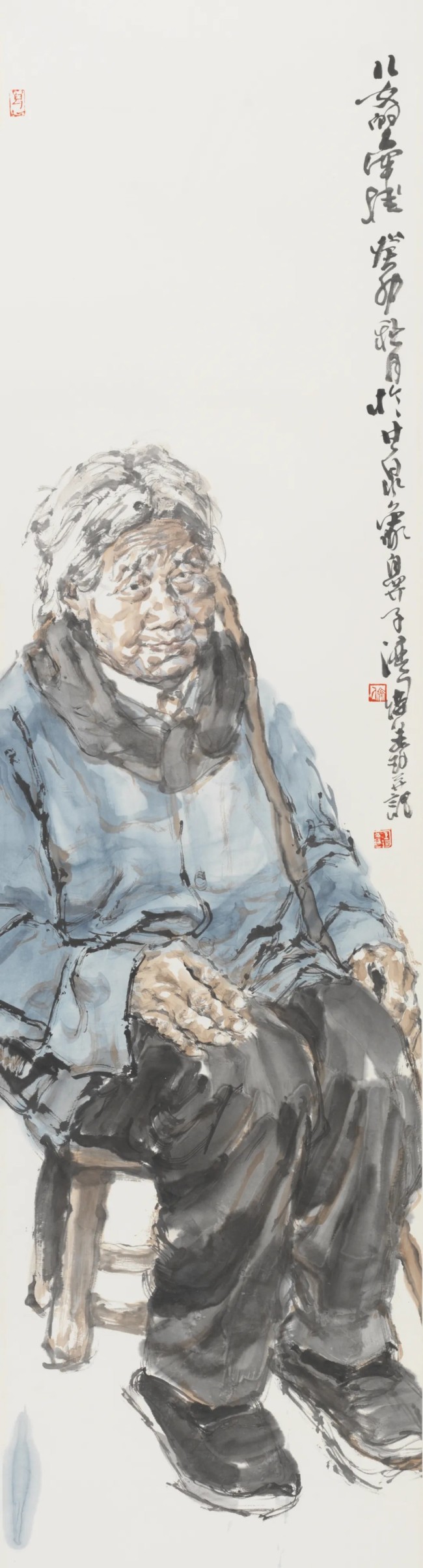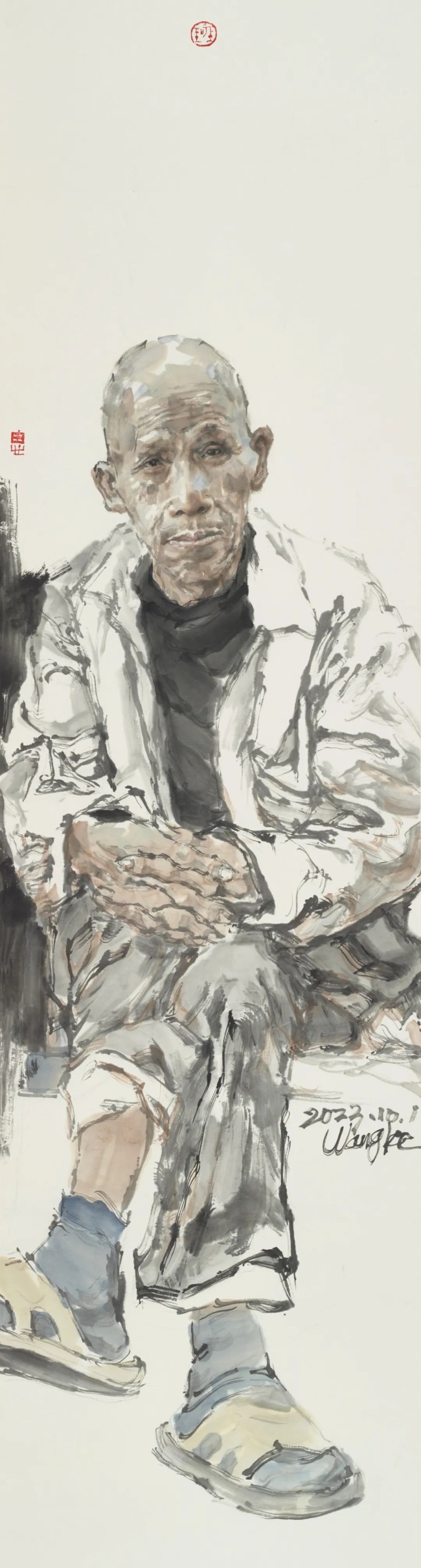 人间怀抱,是一种直面现实人生的立场和能力,真诚为根,平朴为笔,慈悯为寄。在王珂的画中,我们清晰地看到厚实、系统的学院底蕴和写生经验,这也是其完备的写实造型能力和笔墨水准的根柢。