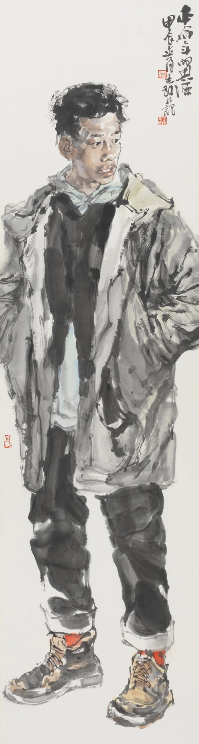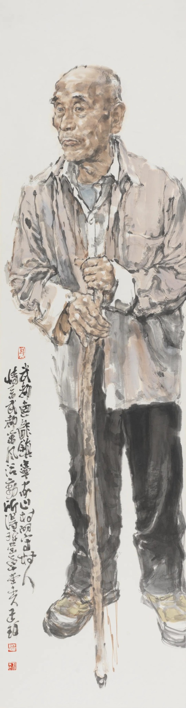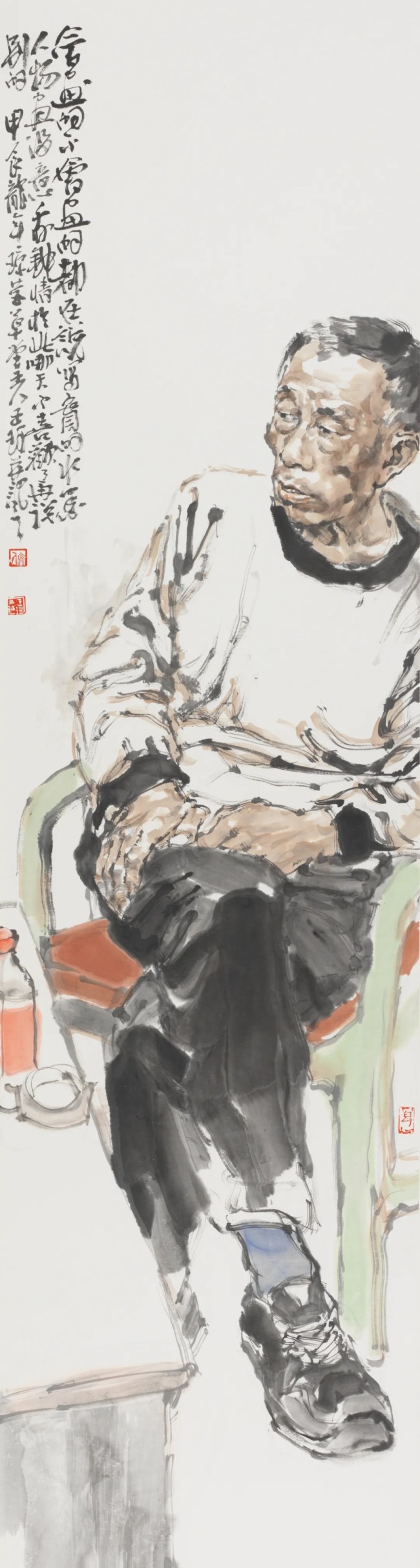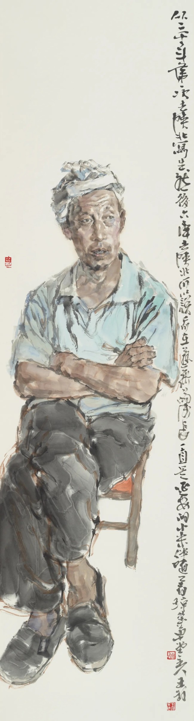 人间怀抱,是一种直面现实人生的立场和能力,真诚为根,平朴为笔,慈悯为寄。在王珂的画中,我们清晰地看到厚实、系统的学院底蕴和写生经验,这也是其完备的写实造型能力和笔墨水准的根柢。