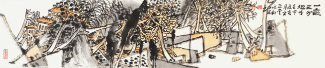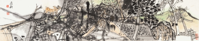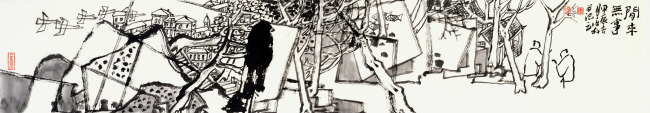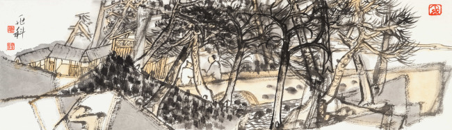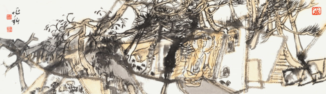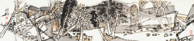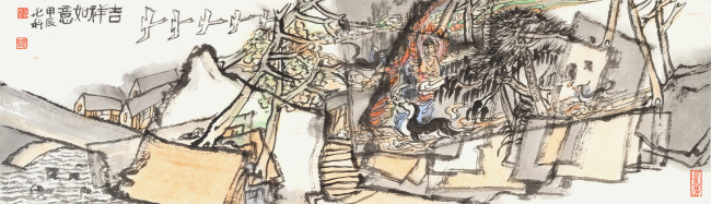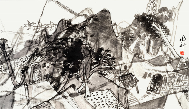 于兆科老师的艺术已不是仅仅局限在笔墨,山川、树木、人物、鸟兽上,更是运用了多元画面分割,造型趣味,用自己的方式把现有的世界重新分解组合,组合出了一个于兆科的艺术世界。