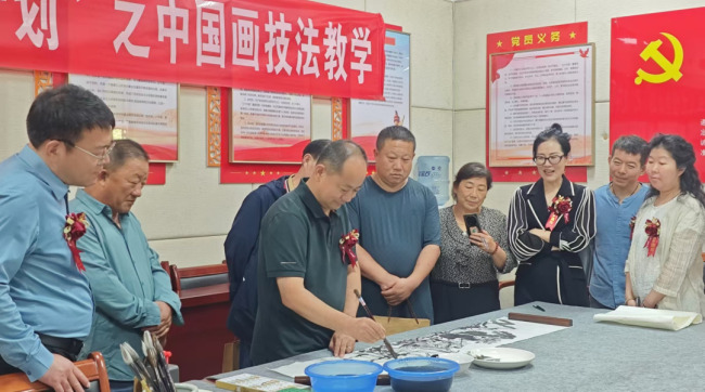 开幕式结束后,在美术馆会议室于兆科老师中国画创作技法现场演示吸引了在场嘉宾及广大书画爱好者的观摩学习。