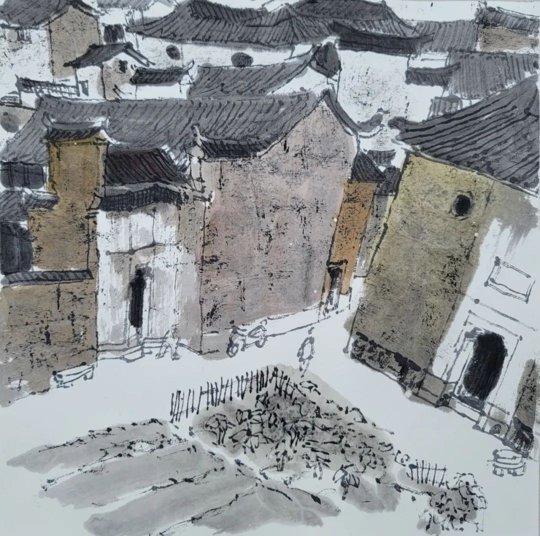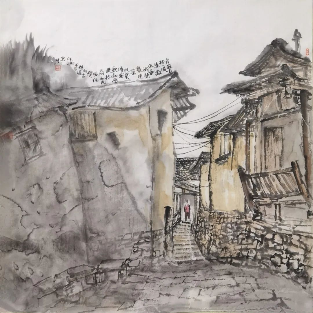 袁仲文 《官岭古村写生》 50cm×50cm
