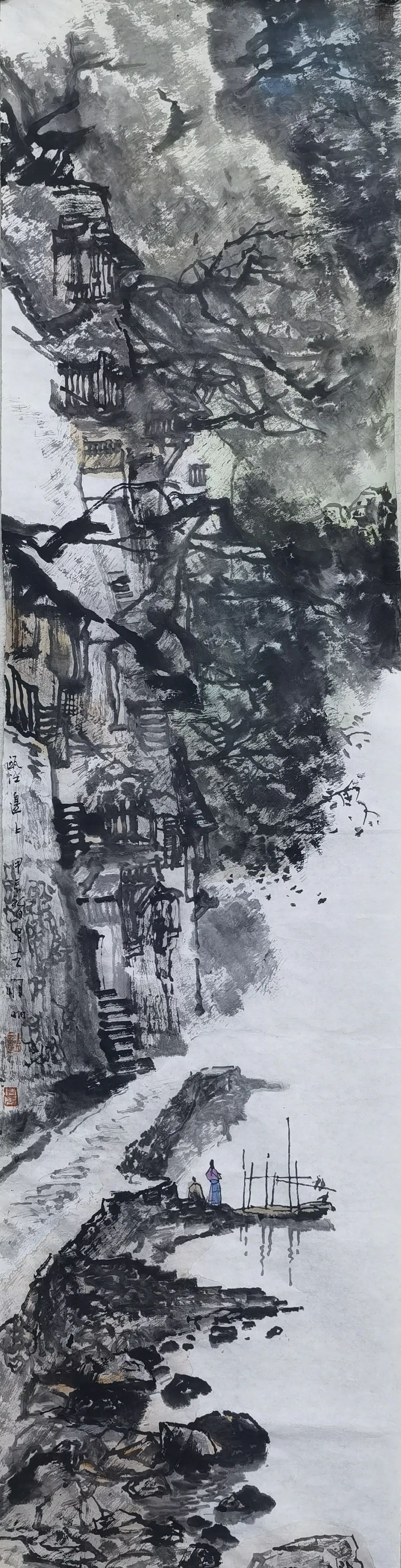 邹明《瓯江边上》 138cmX34cm