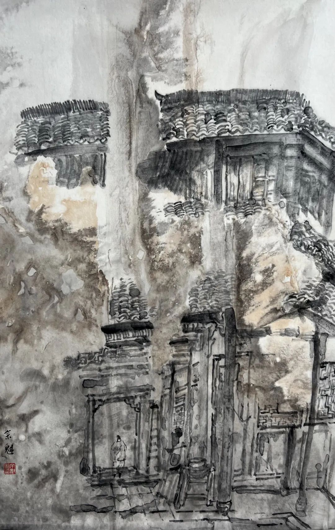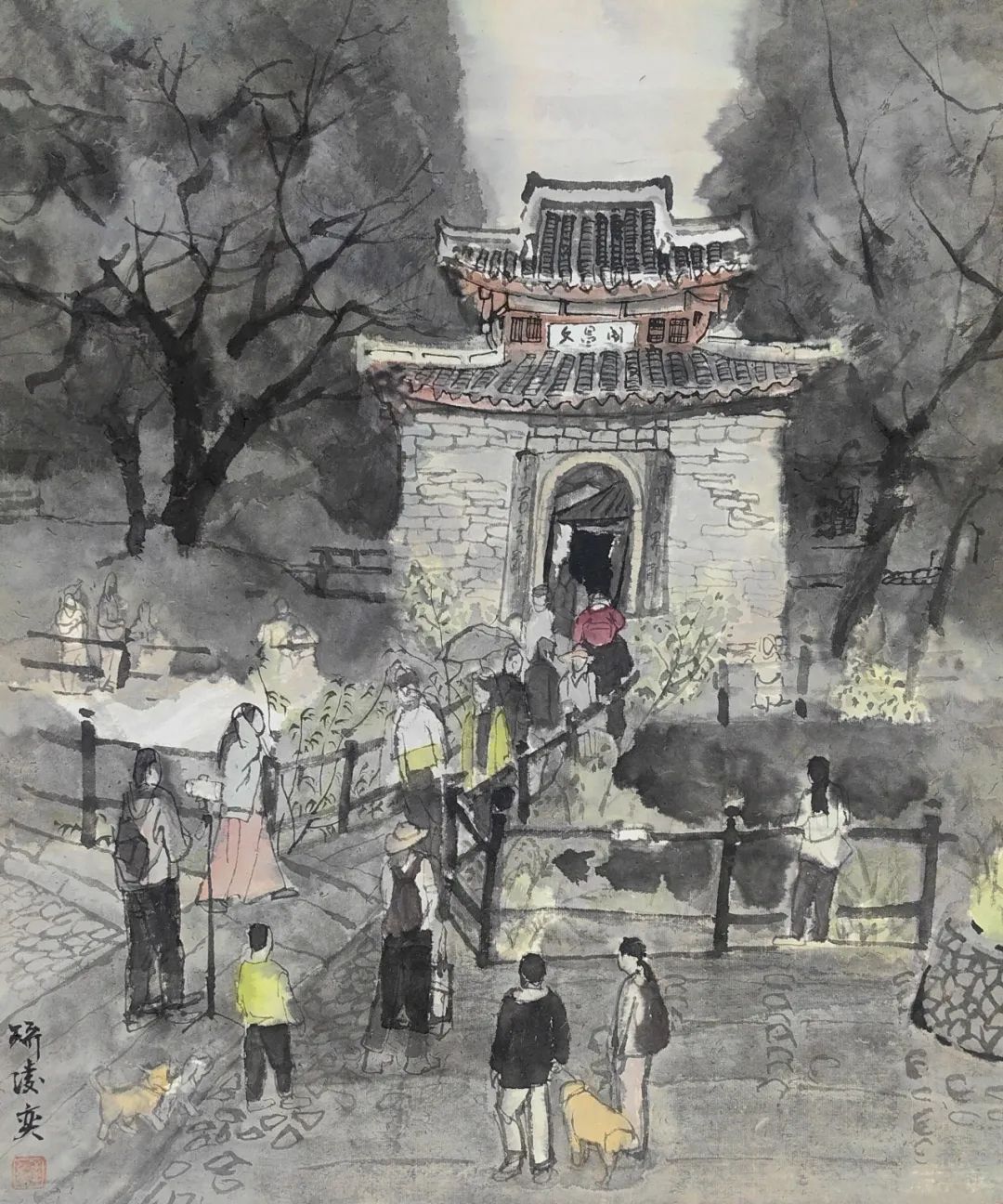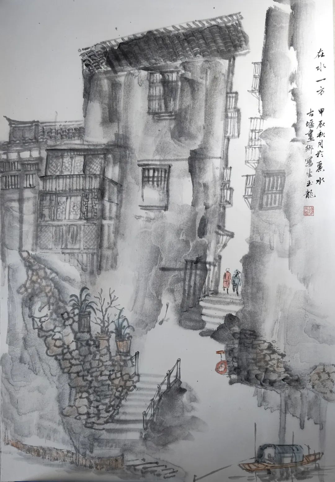 矫凌奕《国庆游丽水文昌阁写生》48cmX58cm
