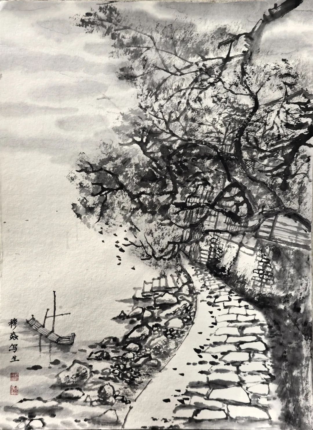 练威鹏 《金山下村写生》 138cmX34cm