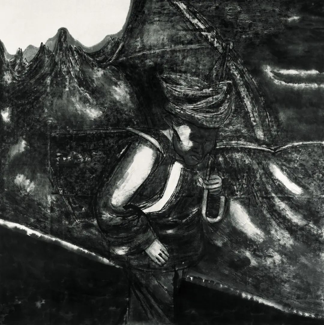 启琼的作品是现代水墨的诗意表达,与时代精神产生了深刻的共鸣。他的作品不仅传承并创新了传统水墨艺术,更是对时代精神的独到诠释。他的创作娴熟自由奔放,运用现代水墨的叙事手法,巧妙地将抽象与写实相结合。通过皴擦、渲染、敷色等复杂工序,他营造出了独特的厚重画面效果。这种技法上的探索,使他的作品既保留了传统水墨的韵味,又融入了当代精神,展现了他具有探索性的笔墨和独特的艺术语言。