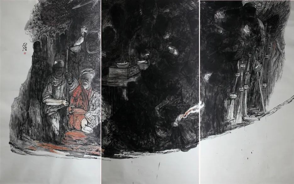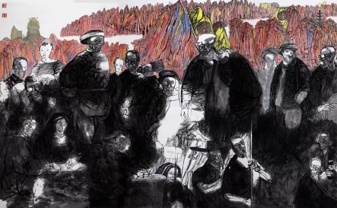 这是我对启琼的大概印象。近几年来,启琼创作了许多以土家族为主题的大幅画作,或横或竖,很有气派。这些作品以浓墨作为基调,有的浓黑浓黑的,有些又是黑白反正的。看得出来,画家在创作上如上所述的那样,他是用生活故事反证笔墨,用人物形象带动笔墨的变化和发展,笔墨首先是状态的笔墨,是和人的特点发生关系的笔墨,这也是艺术规律体现的根本价值。启琼不纠结笔墨,不寻求一笔一划的对与错就是这个道理。(节选)