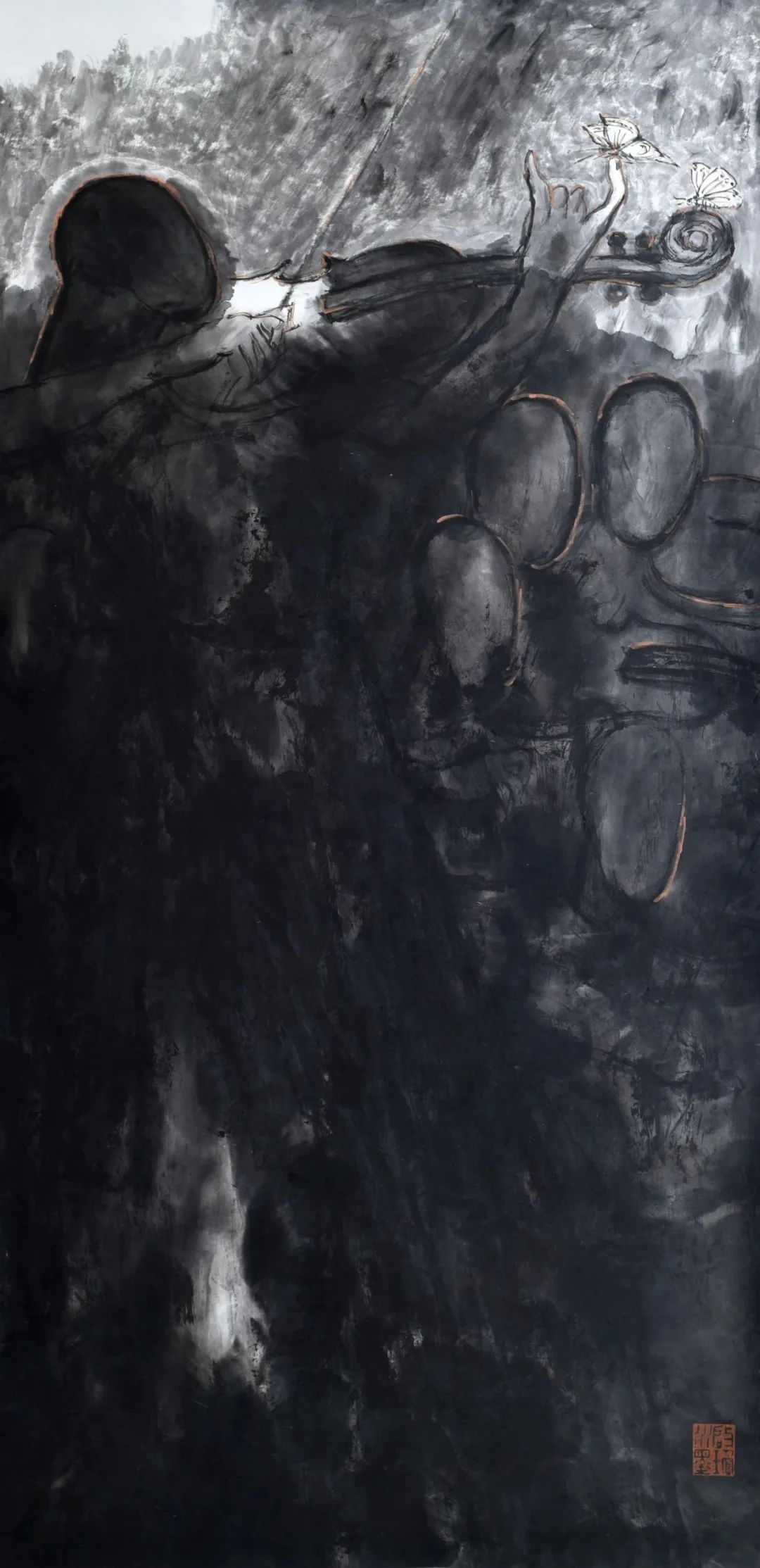水墨画作为中国传统绘画的重要形式之一,具有丰富的文化内涵和历史积淀。时至今日,当代水墨人物画不仅是塑造人物形象、讲述时代故事的载体,也是画家积极探索绘画新形式的“试验田”。我欣喜地看到,启琼并不拘泥于外形的逼真,而重心象、意象,强调自我感受。他在传统的基础上融入了当代水墨的表现手法,使其作品形成了自己独特的表达语言和艺术风貌,从而具有了现代的审美特征,体现了符合民族审美的时代精神。(节选)