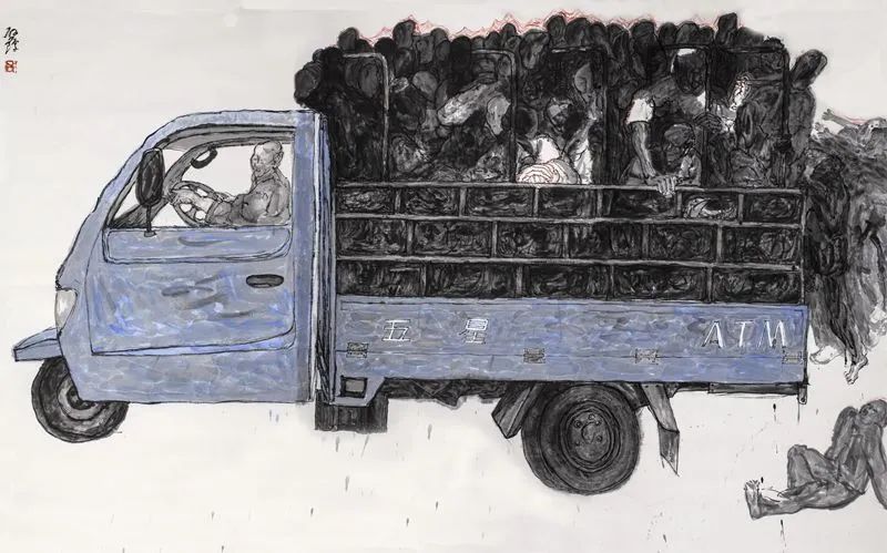 画家启琼在经历了笔墨基础训练之后,没有在续基本功的训练的路经,而是带着这些能力一脚踏进了生活,似乎有意放下那些笔墨的规矩和方法,从生活中寻找符合自己心性的鲜活的人和事,用生活反证笔墨与技术是否合适自己,用形象审视自己的内心,用人物冲破造型的程式,哪怕是生活中的一件小事或一次惊悚都是艺术创作应该面对的现实问题。