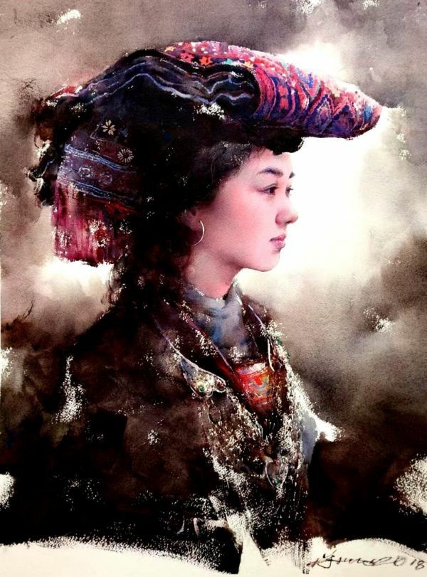 水彩 毛南族姑娘 53cmx73cm 2020年