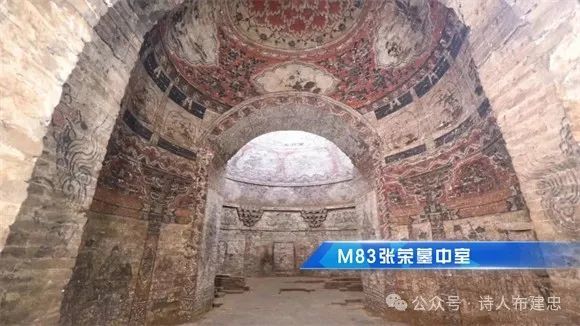 注1:据悉,张荣墓位于济南历城区凤凰路附近。史料显示,张荣,字世辉,生于1180年卒于1263年。官至济南路万户,封济南公,追赠推忠宣力正义佐命功臣、太师、开府仪同三司、上柱国,追封济南王,谥忠襄。这也是张荣被称为"济南王"的由来。张荣家族墓地是山东迄今发现的级别最高、陵园附属物最多、一次性出土文字资料最丰富的元代墓地,意义重大。其中,牡丹纹藻井、仪仗出行图、持戟武士图等是山东地区元代墓葬首次发现。尤其M49壁龛内埋葬人骨的现象在全国亦为罕见。墓地布局规整,明显经过规划,对研究元代汉人、尤其是王侯家族的墓地选择及布局、墓葬形制选择、随葬器物、墓上设施等墓葬制度具有重要意义。张荣作为元代济南的实际最高领导者,被追封济南王。共有七子、四十孙,从张荣开始,其长子张邦杰、长孙张宏,一门蝉联三代“济南王”,势力一直延续到元世祖后期。