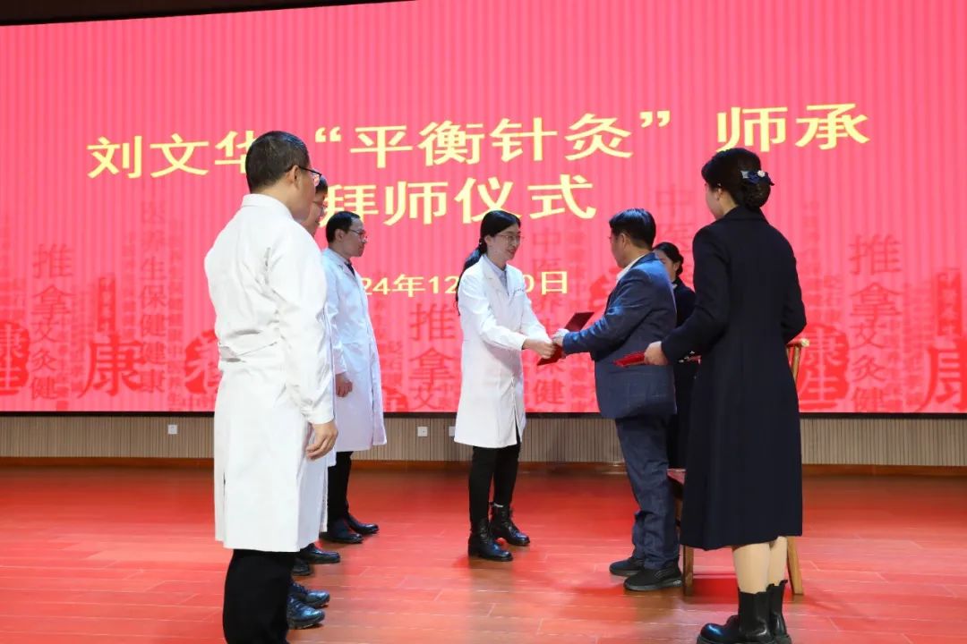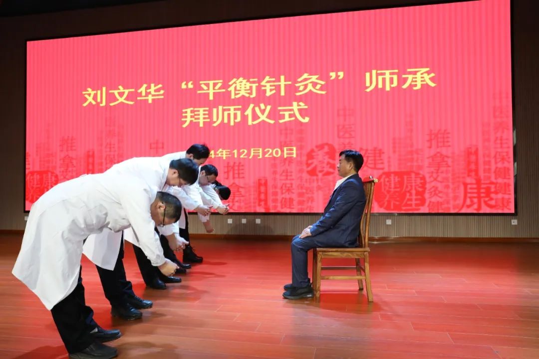 中国人民解放军陆军大校、平衡针灸传承人刘文华院长在讲话中分享了他拜师求艺的过程和运用平衡针灸传承创新行动实践。他要求,师承弟子们要心怀国之大者,根植家国情怀,勇于担当作为,学会传承创新,推动中西医结合技术不断进步发展。在传承的道路上积极践行白求恩精神,勤奋学习,工作上严谨负责,学术上精益求精,青出于蓝胜于蓝,做一个忠于党和国家,全心全意为人民服务的优秀医务工作者。