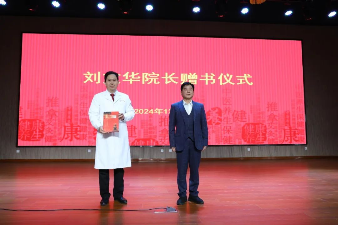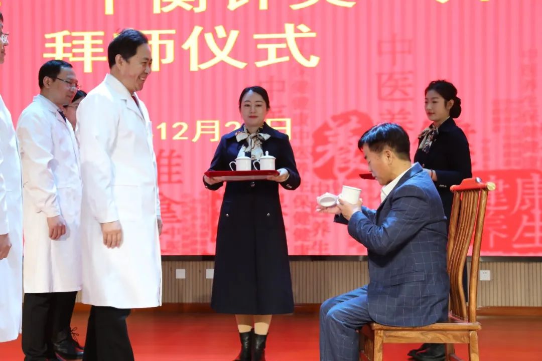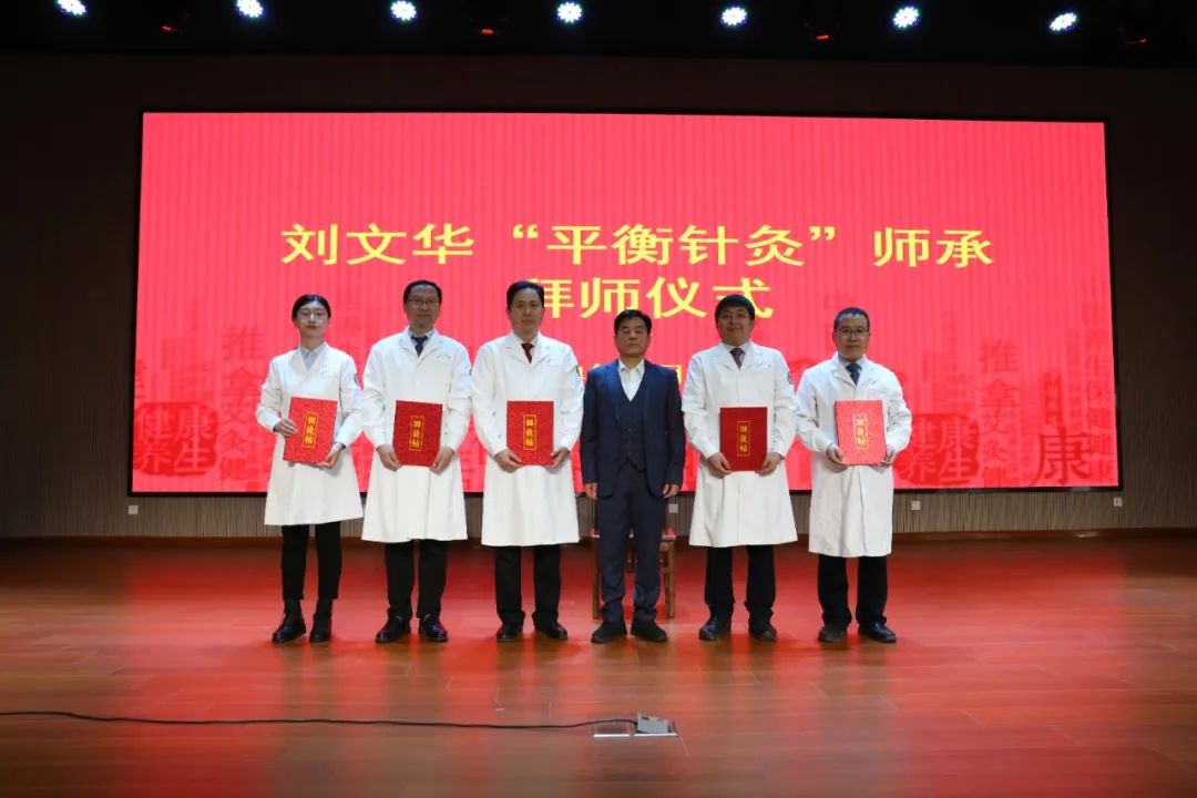 拜师收徒仪式上,弟子刘瑞林领读拜师帖,五位弟子向师父行拜师礼、呈拜师贴、敬师茶,师父刘文华为弟子训诫、回回徒贴、赠书回礼。自此,刘文华与我院党委书记、院长刘瑞林,康复医学科二病区主任王洪涛,康复医学科一病区主任郇超,中医科主任马荣,疼痛科主任尹久法正式结为师徒关系。