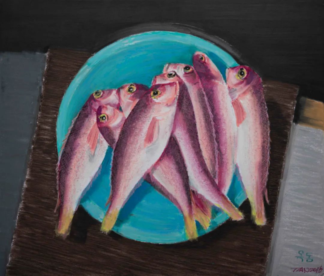 第一、可能是跟田老师过去在中央工艺美术学院读书的经历有关,我觉得田老师的画面总有一种设计的意味,很有想法。通常我们画画在画之前总是希望能够找到自己想画的那个切入点,画感动人的地方,那么我看了田老师的画,这一点就很明确,他并不挑题材,什么都能画,信手拈来,每一幅画都有他独特的视角,他在画面的经营、画面构成、构图处理上很特别。我觉得所谓画家的设计感其实就是一个画家在创作一幅作品的时候最初的那个原始的起点,我觉得这个最初的想法一旦形成了以后,他会通过最合适的一种方式呈现出来。技术是为了更好地服务于想法,要把自己想表达的画面的情绪、意境通过技术呈现出来,所以我看田老师的画,这一点让我特别受启发。
