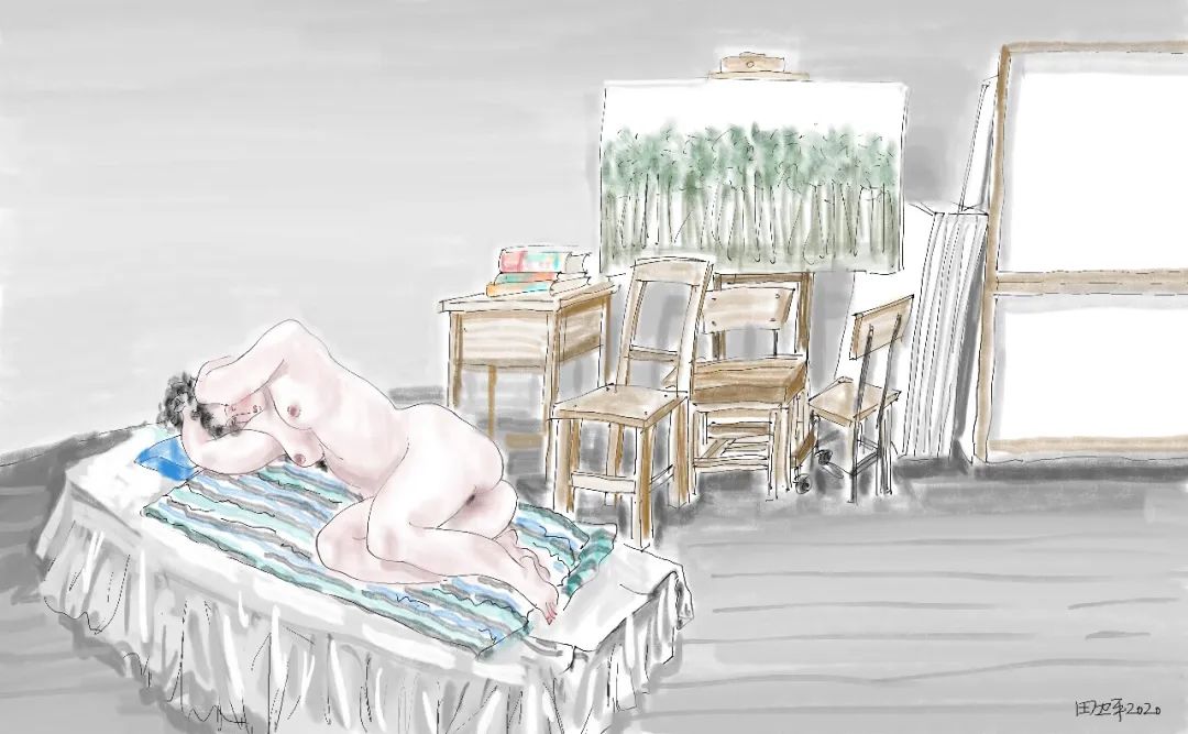 这是我对田老师的画的粗略的感受,也是一次来学习的机会。田老师这么多年,一直在油画领域中探索,他也通过平板电脑画些数码绘画,还有一些不同类型,不同材质的探索。我觉得对于画家来讲,绘画是没有终点的,是一生都在探索的过程。田老师是一位让人敬佩的前辈画家,虽然很多画家到了退休年龄,工作可以放下了,但是我们在艺术上又有更多精力的投入,我相信田老师未来仍然会在油画领域有更精彩的表现。