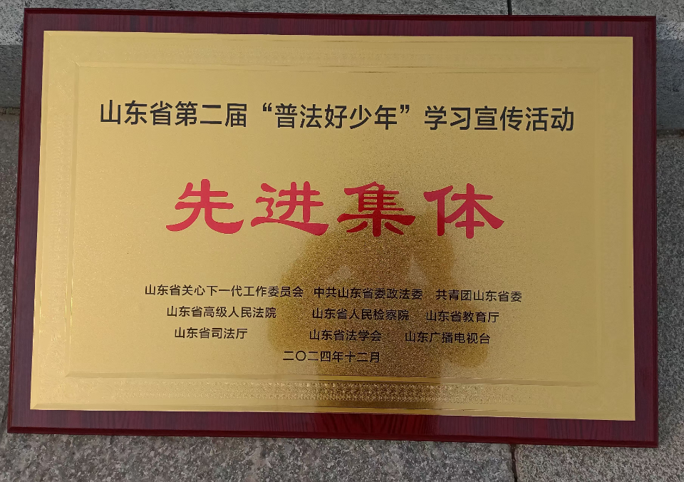 喜报!区关工委被授予山东省第二届“普法好少年”学习宣传活动先进集体