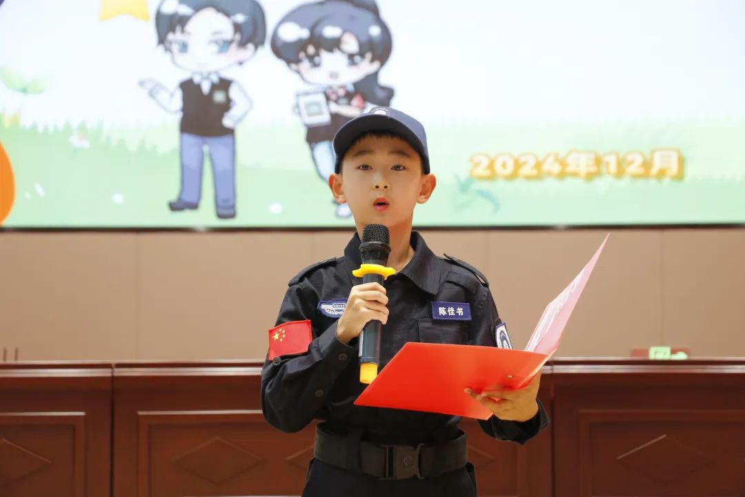 潍坊少年警校优秀学员代表陈佳书,分享了他在少年警校的所学所感
