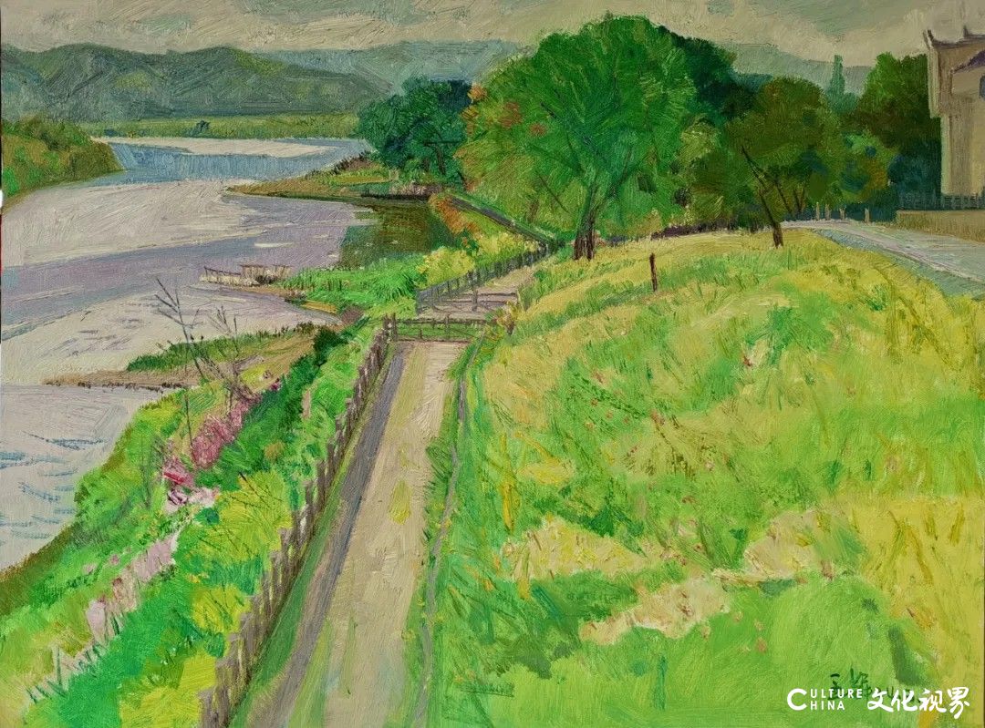王辉先生在八十年代中期已经崭露头角,并一直活跃在画坛,能画能文博览群书。因此,他的阅历和天赋都使得他思想的架构超过一般的同代,使得他关注的问题也不限于艺术专业的领域。他的油画风景从细节的生动到整体的感人,从叙述的具体到抒情的单纯,从景物的刻画到笔墨的经营,他年年写生,处处用心,一路没有停顿地锤炼自己作品的艺术品质。