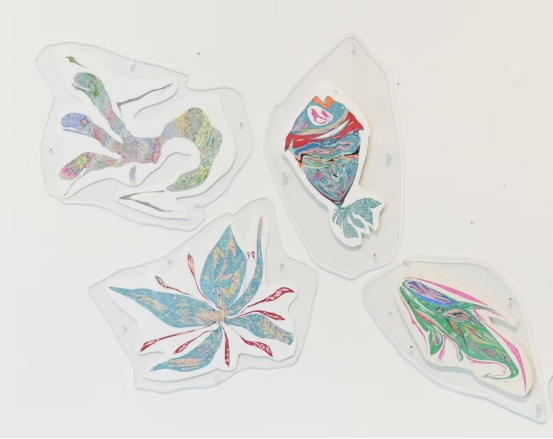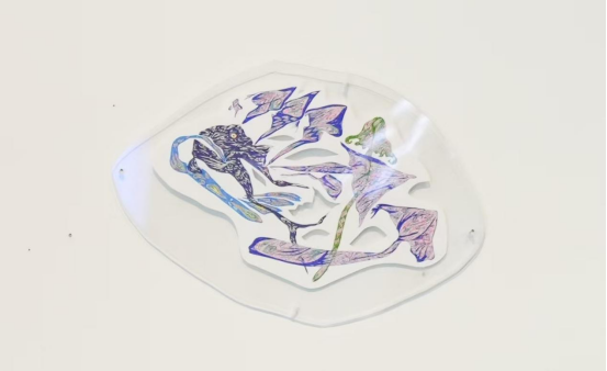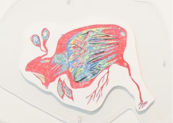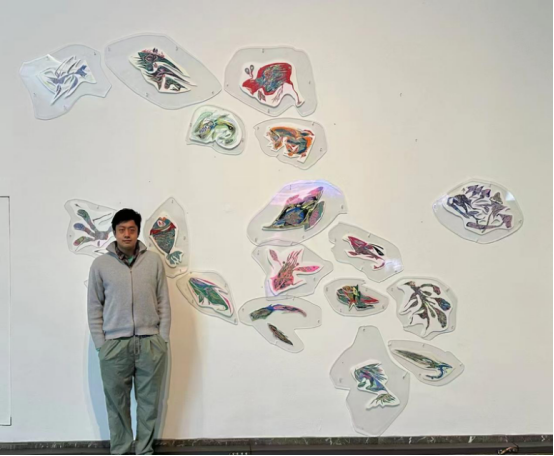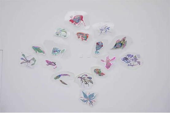 文化视界网报道 本届济南国际双年展,青年艺术家张天助的作品《深海奇物组合》格外引人注目。这幅作品是一件墙壁上的装置艺术,由一组形态各异的塑料片组成,每一片上都绘有彩色的图案。这些图案看起来像是各种抽象的生物或植物——鱼类、章鱼、海藻......异彩纷呈,雄奇瑰丽。塑料片以不规则形状排列,背景是白色的墙面。欣赏这幅作品面时,人们仿佛置身于亿万年前的原始海洋——那个万物竞发的初始时刻。独立的单位组成有机的整体,让人联想到细胞的生长与分裂,物种的进化与繁衍。生命源于大海,生命的灵魂融汇在海之子们游动的光影中,海洋里的每一条鱼、每一根草都是生命的奇迹。