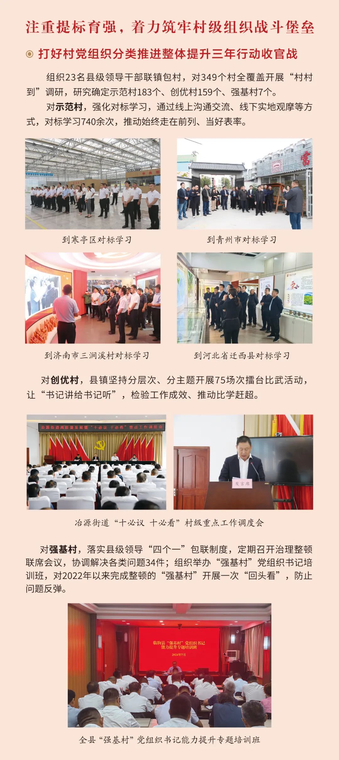 【基层党建】潍坊临朐农村基层党建这一年临朐组工2025-01-11微信扫码扫码下载客户端2024年,临朐县坚持以加强基层党组织政治功能和组织功能为根本,以抓党建促乡村振兴为重点,以更好服务群众、凝聚人心为主线,持续抓基层、打基础,推动农村基层党组织建设全面进步、全面过硬。 特别声明:本产品由大众新媒体大平台“大众号”号主上传发布,不代表平台观点和立场。