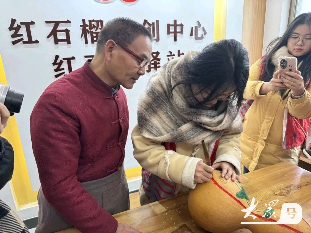 2025年1月11日,山东建筑大学艺术学院丹心织梦青年团奔赴泰安市泰山区红石榴文创中心开展以“赓续文心,匠韵遗风”为主题的社会实践,探寻泰山杨氏葫芦雕刻的奥秘,领略传承百余年的非遗魅力。