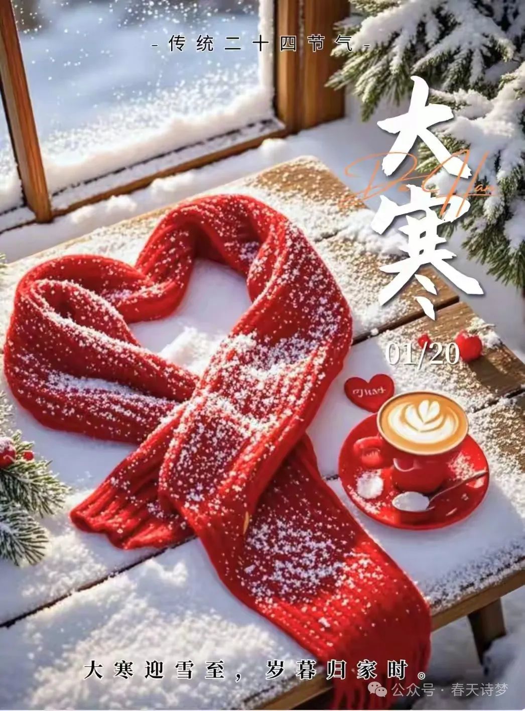 大寒在每年公历 1 月 20 日前后,今年正是此日,农历腊月廿一。此时寒潮南下频繁,是中国部分地区一年中的最冷时期,风大,低温,地面积雪不化,呈现出冰天雪地、天寒地冻的严寒景象。
