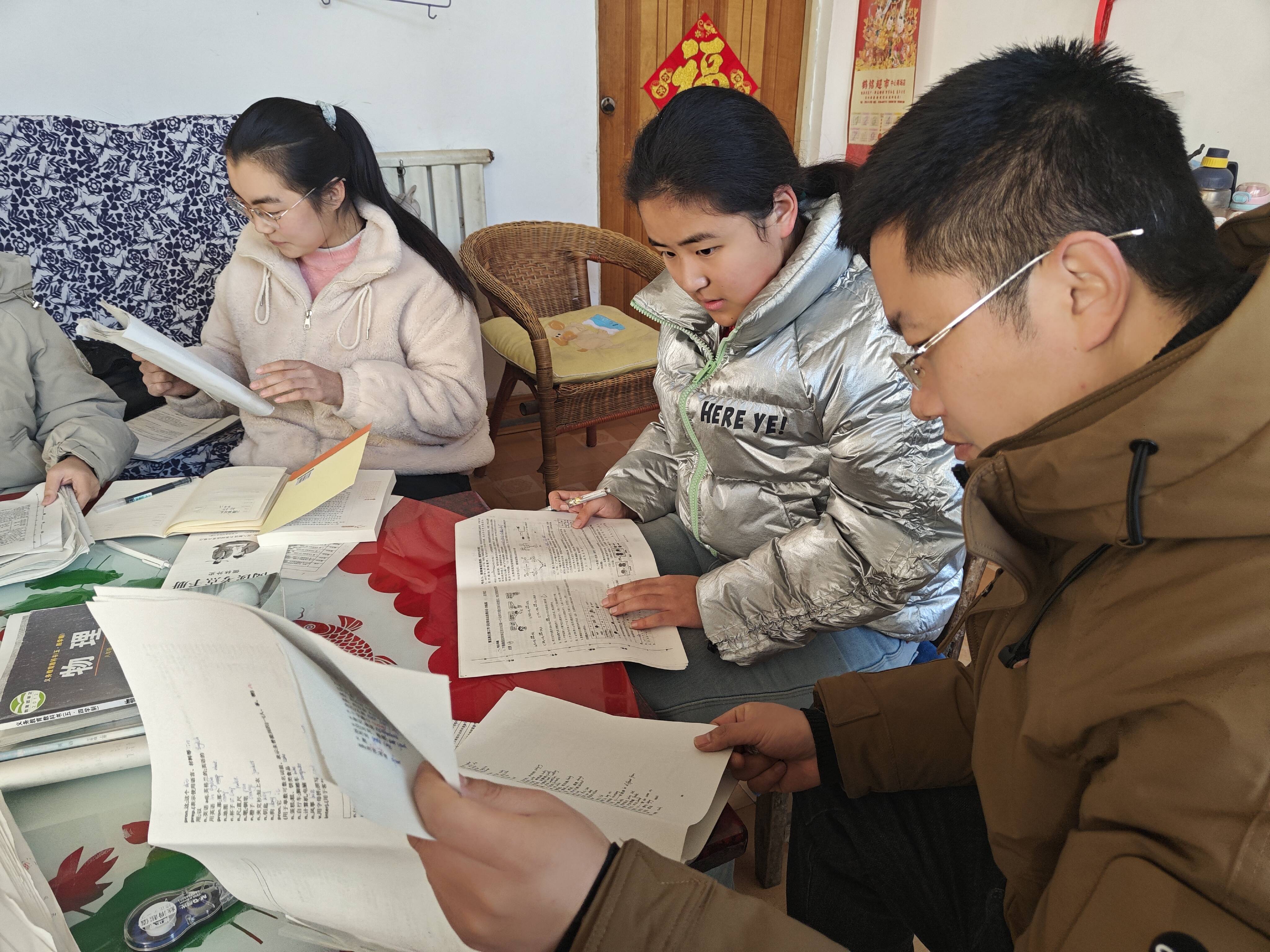 各村居学习小组的同学们集中在一起进行合作学习,小组长为同学们解疑答惑,同学们共同解决寒假作业中的难题。为同学们的高效学习点赞。
