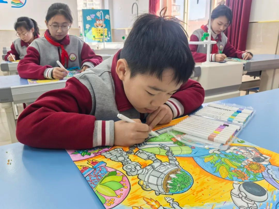 为充分激发学生的科学探究兴趣与创新思维,近日济南市历城区唐官小学举办了校内科幻画比赛。此次比赛为学生们提供了一个自由发挥的平台,让他们通过画笔展现对未来世界的无尽想象。