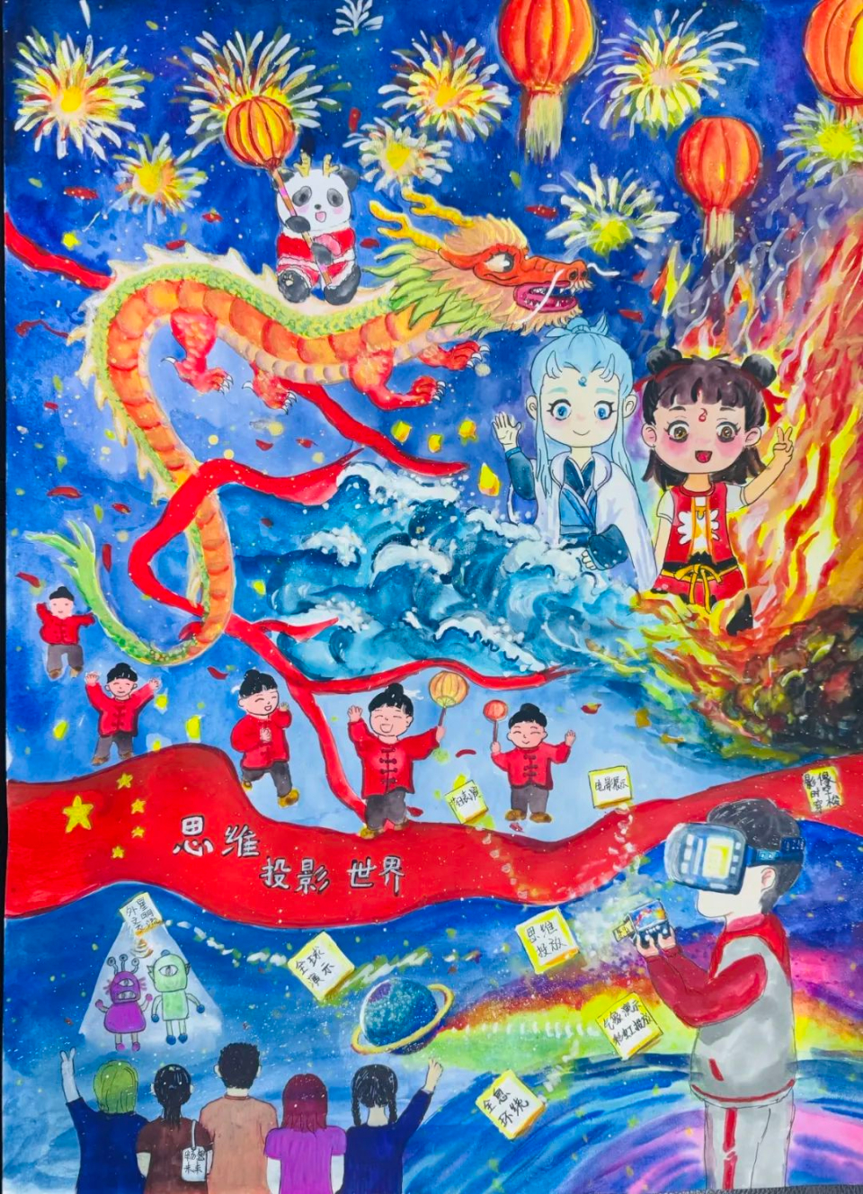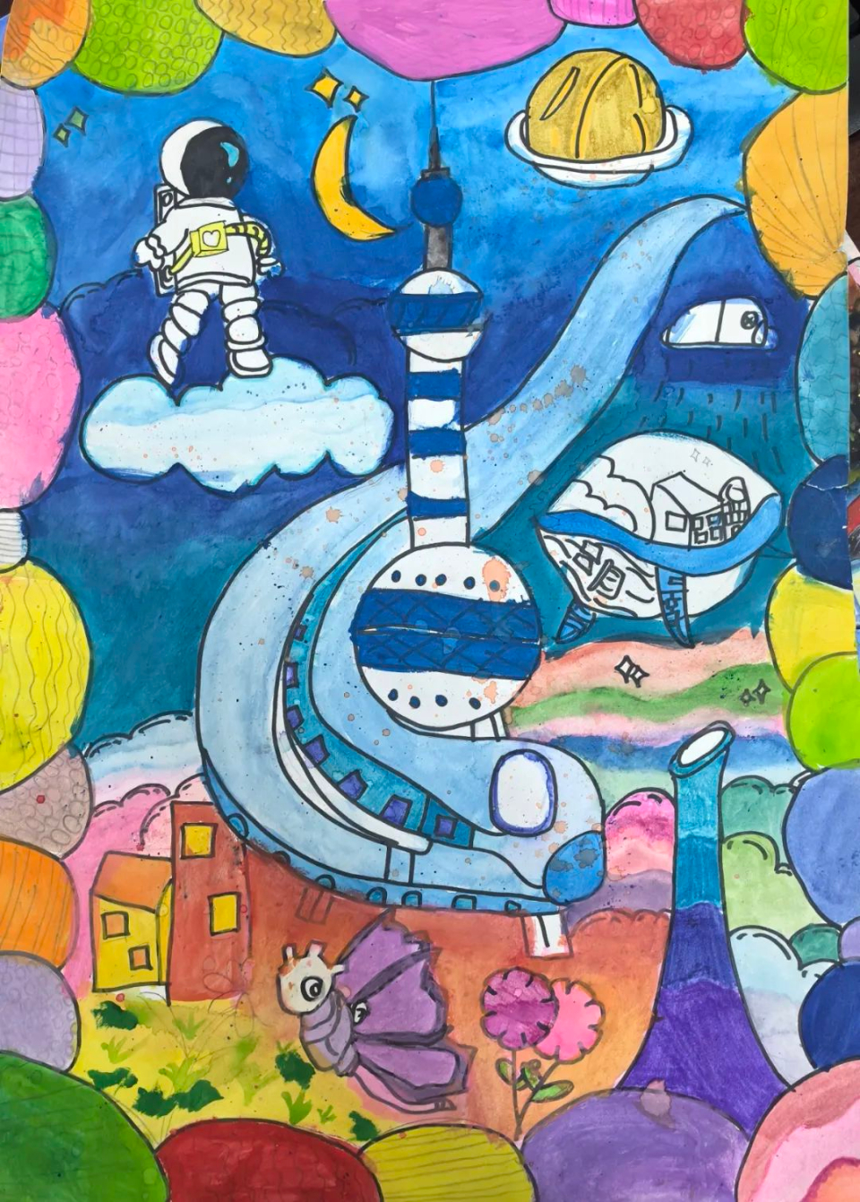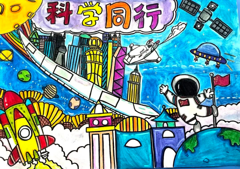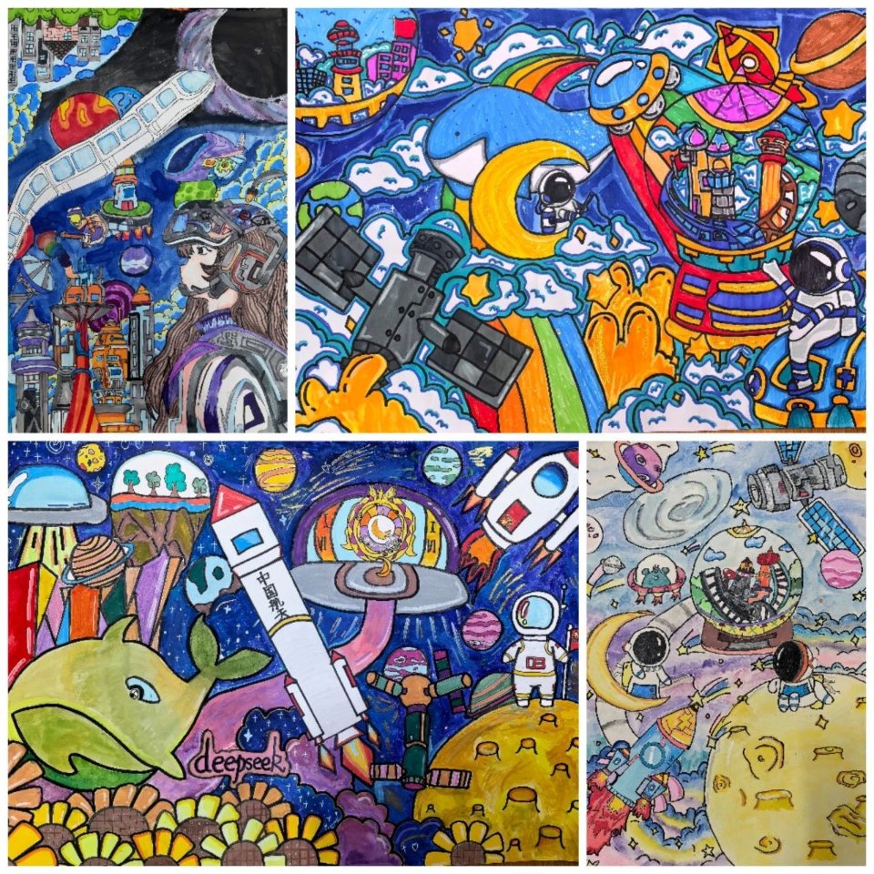 参赛的画作中,未来世界仿佛成为了科幻电影中的真实场景,光影交错,立体多维,每一处都彰显着科技与自然的和谐。学生们巧妙运用色彩与线条,将心中的未来世界刻画得栩栩如生,令人赞叹不已。