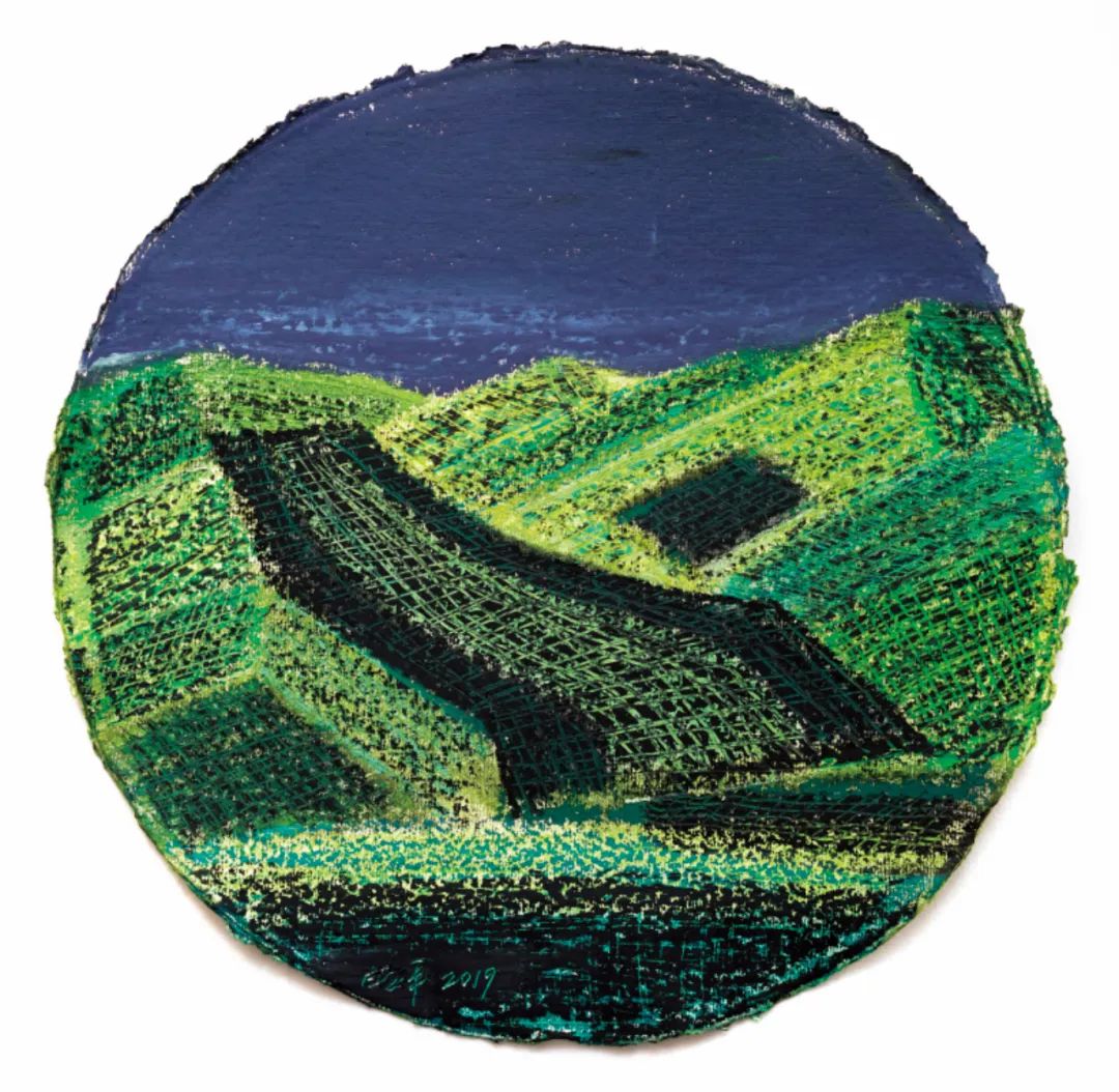 纸上色粉、油画棒 直径30cm