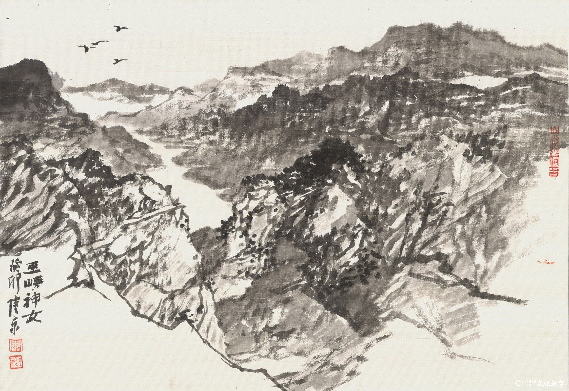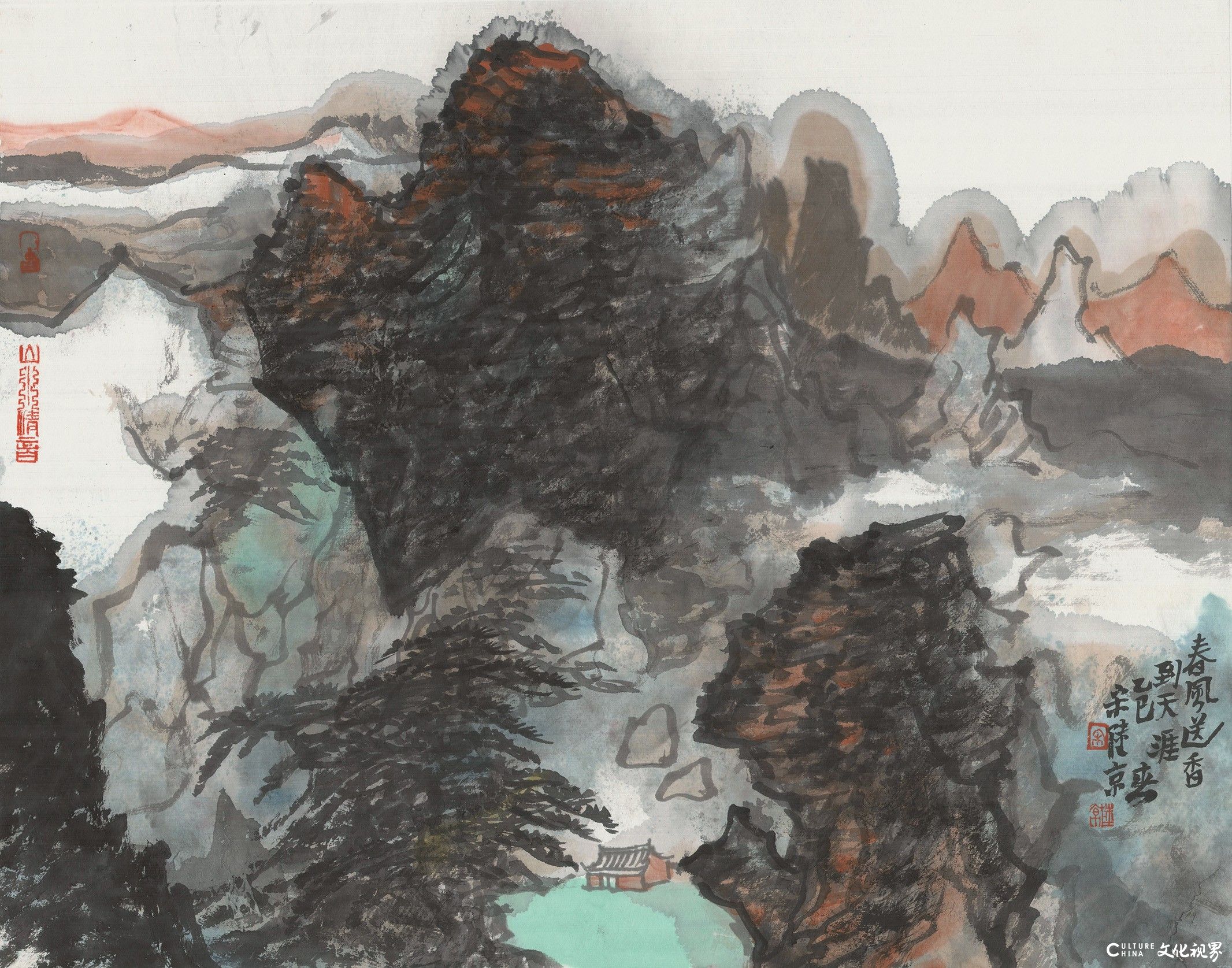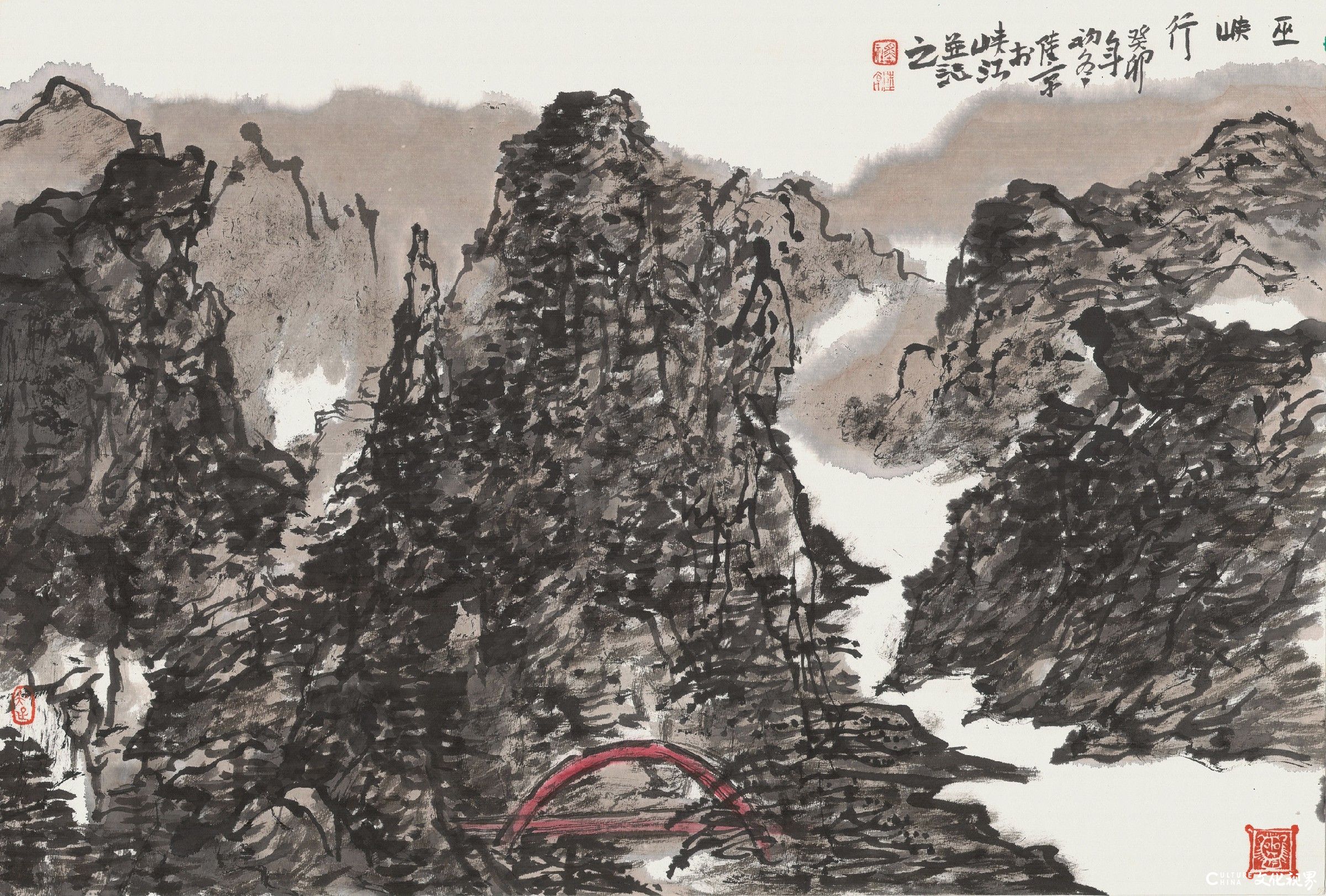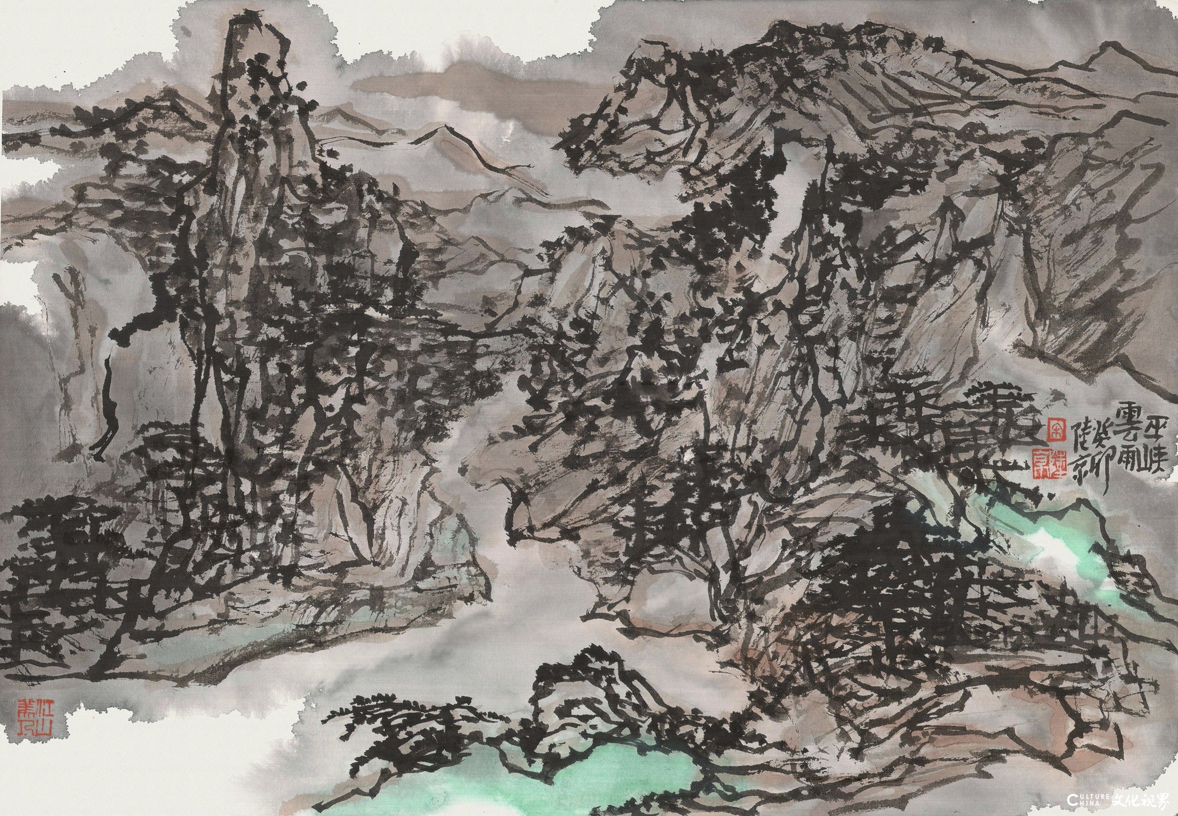 宋陆京,这位生于中原、扎根岭南的艺术家,以诗性的笔墨语言,将山河万象凝练于尺素之间。他的山水画作,以枯润相生的墨色、疏密跌宕的章法,编织出充满呼吸感的意象经纬。那些看似散淡的笔痕,实则暗藏对“观物”与“观心”的辩证思考:山石肌理中凝结着时间的褶皱,溪涧回响里回荡着宇宙的节律。