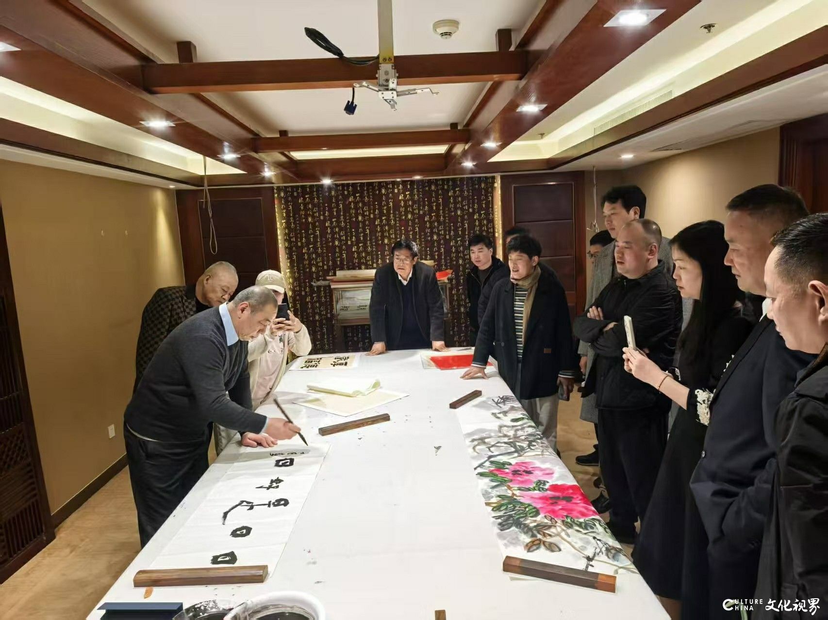 出席开幕式的领导和嘉宾有:浙江省文联原党组书记田宇原,浙江省美协副主席兼秘书长王敏杰,江苏省城市建设研究院副院长吴宁,浙江画院党支部书记茹峰,浙江画院副院长兼创研部主任余宏达,中国美术学院国画院院长助理黄佳茂,杭州画院副院长(主持工作)缪宏波,杭州国画院副院长(主持工作)蔡栋,西泠书画院常务副院长陈可,绍兴画院执行院长方本幼,杭州国画院培训部主任王菂,广州市美术家协会主席团成员邹俊豪。