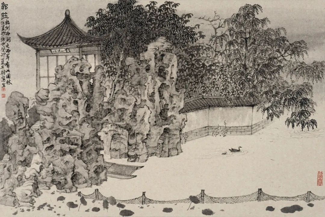 我曾在拙政园写生时见稚鸭凫水,涟漪乍起又归平静,忽有所悟:画者追寻理想画境的过程,何尝不是在园林迷宫中寻觅出口?陈从周所言“静观动观”的造园之法,亦如绘画创作的辩证之道——既要以静观之心捕捉刹那永恒,又需以动观之眼把握时空流转。叠石理水的匠意,好似画家“胸贮五岳”的积淀;曲径通幽的设计,暗合“意在笔先”的经营。