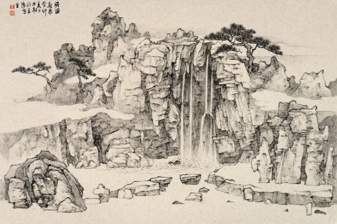 瞻园飞泉-纸本水墨-38cm×57cm-2023年
