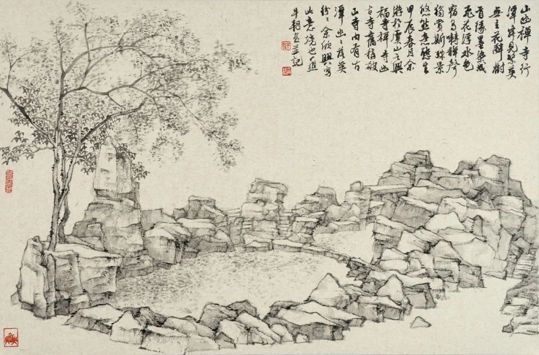 《山寺落英》常熟兴福寺写生