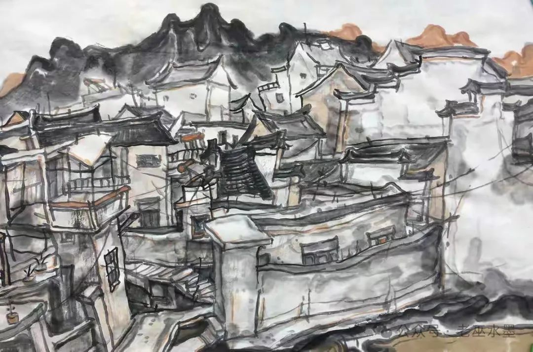 巫卫东·皖南写生 | 水墨氤氲间,半卷皖南盛景于宣纸上轻轻洇开
