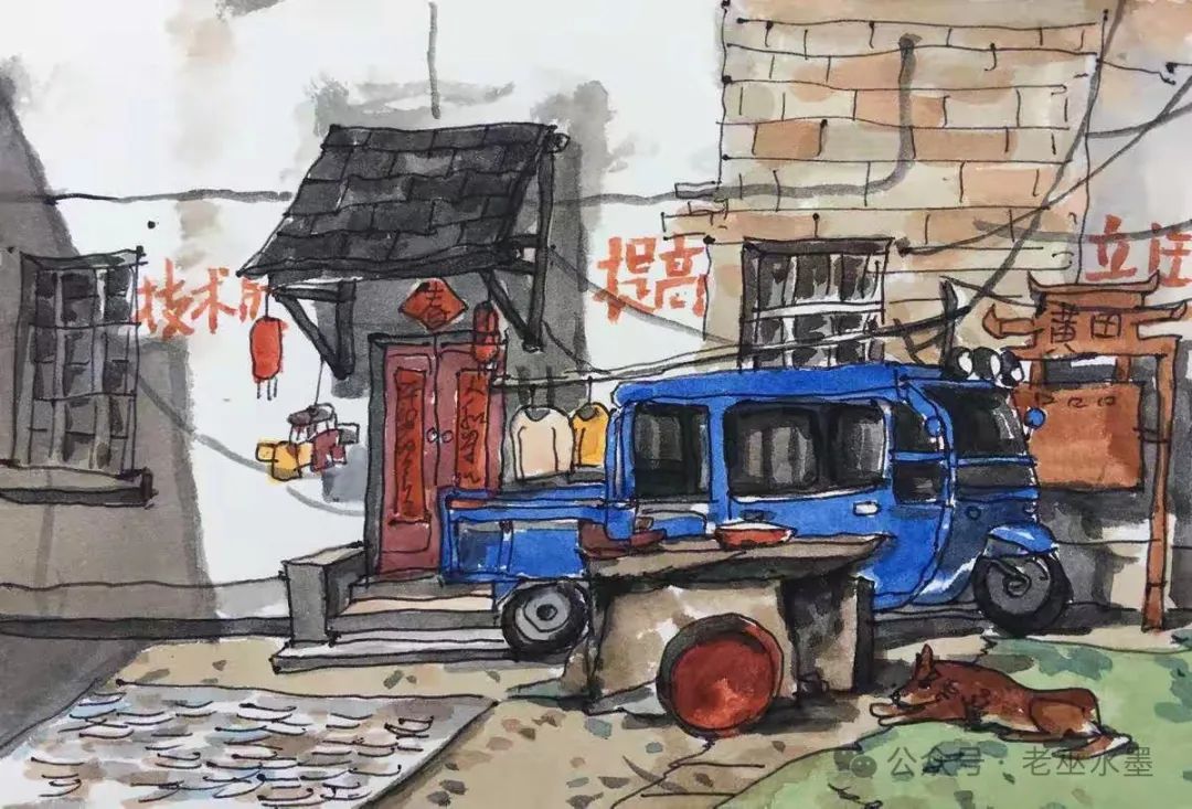 画夹里层层叠叠的写生稿,终将化作记忆的包浆。当西北的罡风还在调色板上呼啸,我的笔墨早已在皖南的细雨里,完成了一场与风景的私密对话。