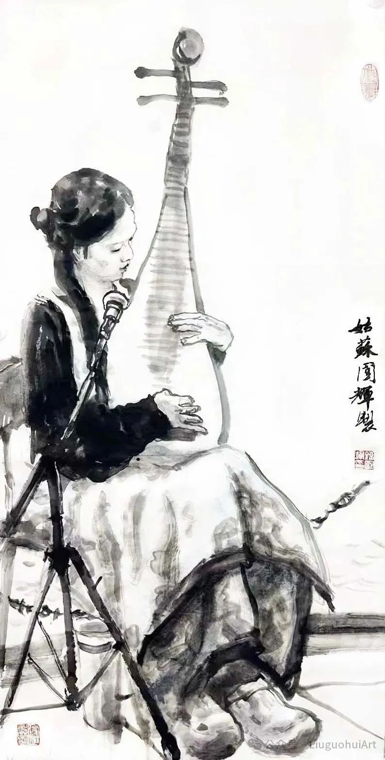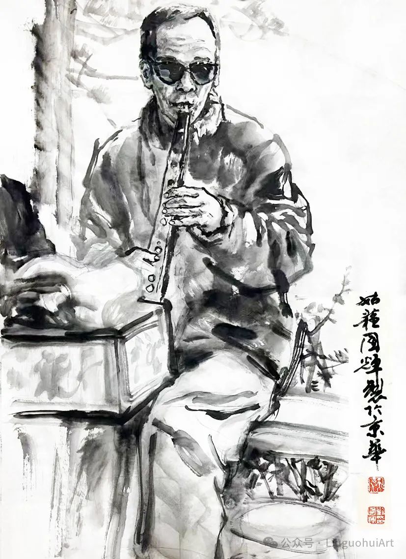 在当代水墨人物画坛,刘国辉的艺术实践始终保持着对时代脉搏的敏锐感知。近年来,这位深耕传统又锐意革新的艺术家,将创作焦点投向更为广阔的日常生活场域。从城市公园的晨练老者到街头巷尾的文艺工作者,从咖啡馆里的音乐教师到舞台幕后的表演者,他以画笔构建起一座当代中国的“平凡博物馆”,在看似庸常的生活切片中提炼出超越性的艺术价值。这种转向不仅延续了他一贯的写实主义精神,更在笔墨语言与文化表达上实现了新的突破,为水墨人物画的现代性转型提供了极具启示性的范本。