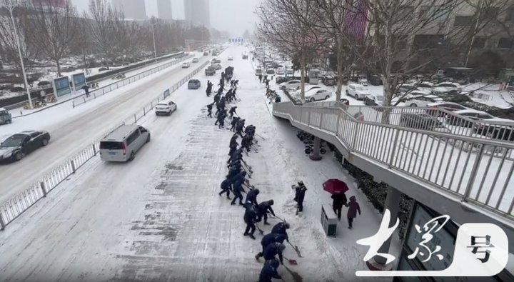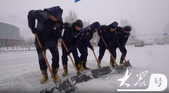 在济宁市主要道路街道、商场、敬老院等重点帮扶场所,消防指战员们抡起铁锹、挥动扫帚,刨得刨、扫得扫、铲得铲,配合默契,扫雪的整个场面井然有序,指战员们一点点地把积雪和冰层铲起来集中堆放。扫雪破冰过程中,低温天气丝毫没有击退指战员们的激情,口中呵出的腾腾雾气化作如火的干劲和热情包围着指战员,手中的扫雪工具不断挥舞,忙碌的“火焰蓝”身影构成了一道亮丽的风景线。