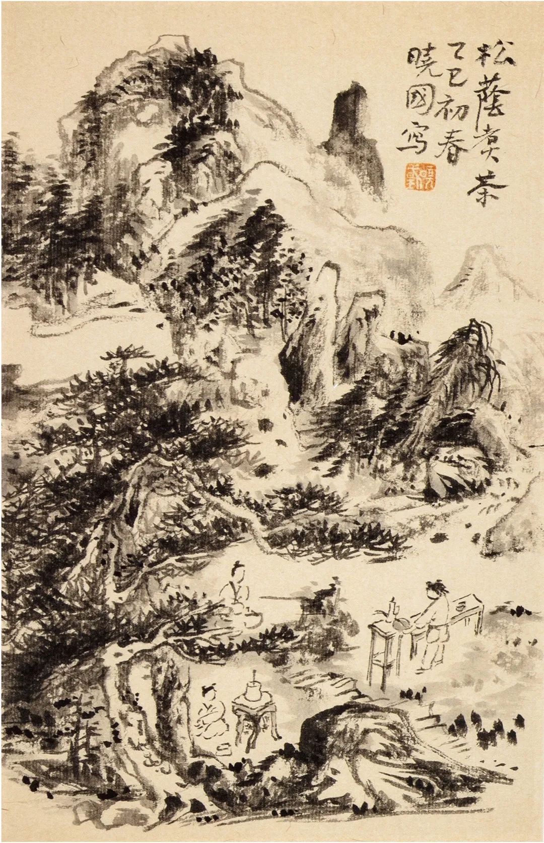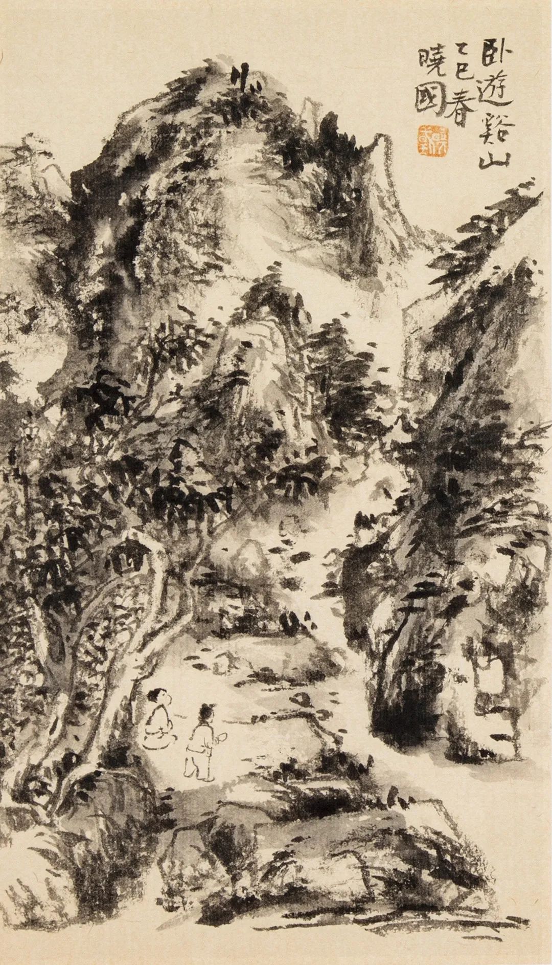 晓国本三晋才人,而雅爱书画。渐得所悟,复携游上国,更逢名师益友,眼界为开。所画山水,水墨淋漓,丘壑幽深,烟云空蒙间,宛如黄宾老中晚期风调。其画幅舒展,用笔松动,似接黄山白岳外一望连峰。中国山水画自唐宋之崇尚气象峥嵘,至元代转而追踪笔精墨妙,而迄于近现代。宾老尤倡五笔七墨之法,晚年更进入墨点参差,水墨浅深之无差别境界。山水笔墨在不经意的精神恣纵下任其丑朴。此境界非易入,而更难出。晓国学养丰厚,读书作画之余兼善古琴,尝见其手书琴谱,聆其琴操,觉古意横陈,风雅自胜。余向喜宗少文所谓“抚琴动操,欲令众山皆响”一语,此乃中国画妙参音韵的最高境界。秋风又至,禅唱在林,晓国近似出版其画集,属予略书片语,是以勉之。并附短句,以复其意:山光迥照人,画笔正逢春。丘壑随森列,烟霞为点皴。宗师取法古,意匠欲求新。忽听弦音外,飞鸿目送频。