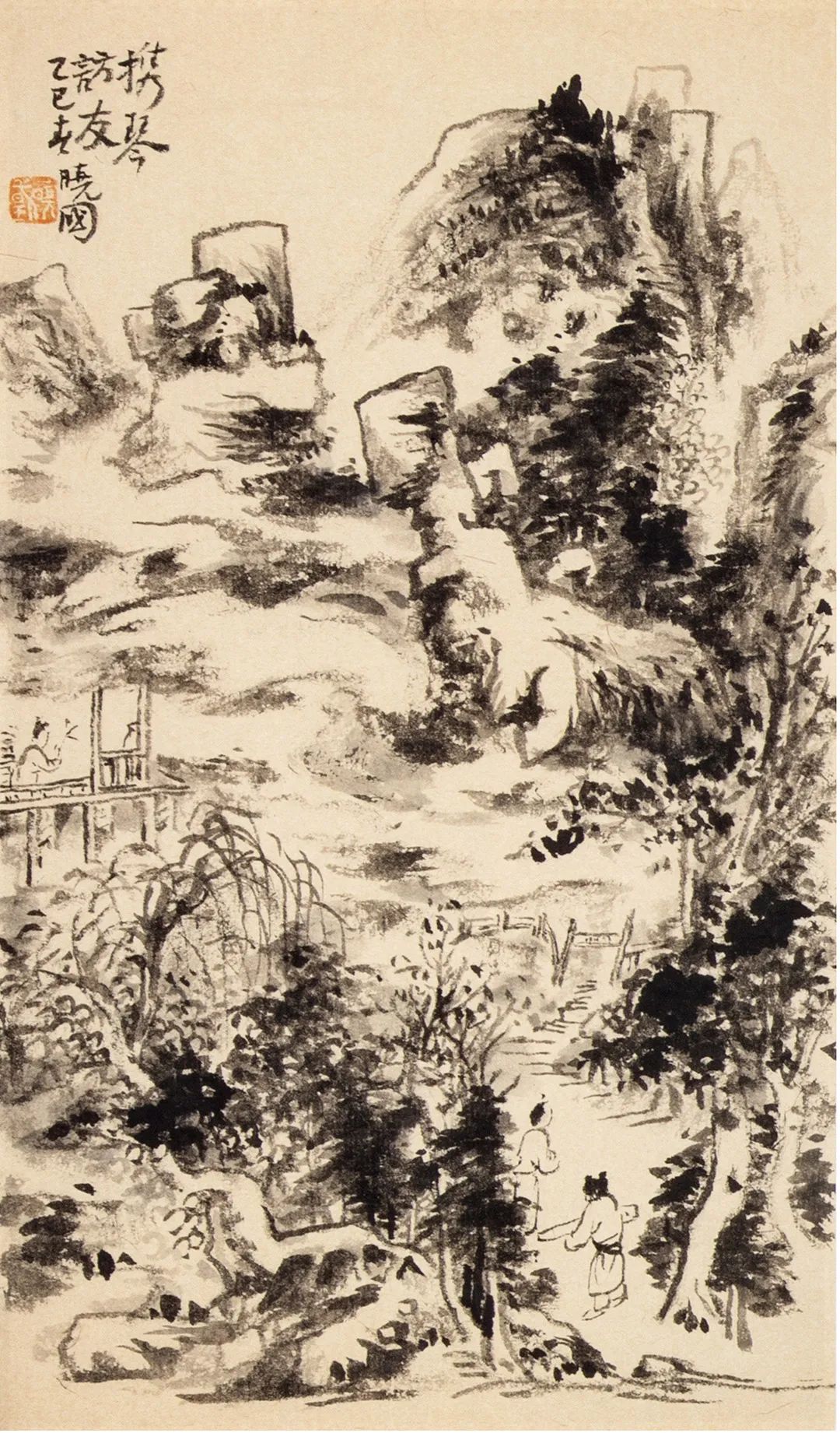 携琴访友-30x17cm-纸本水墨-2025