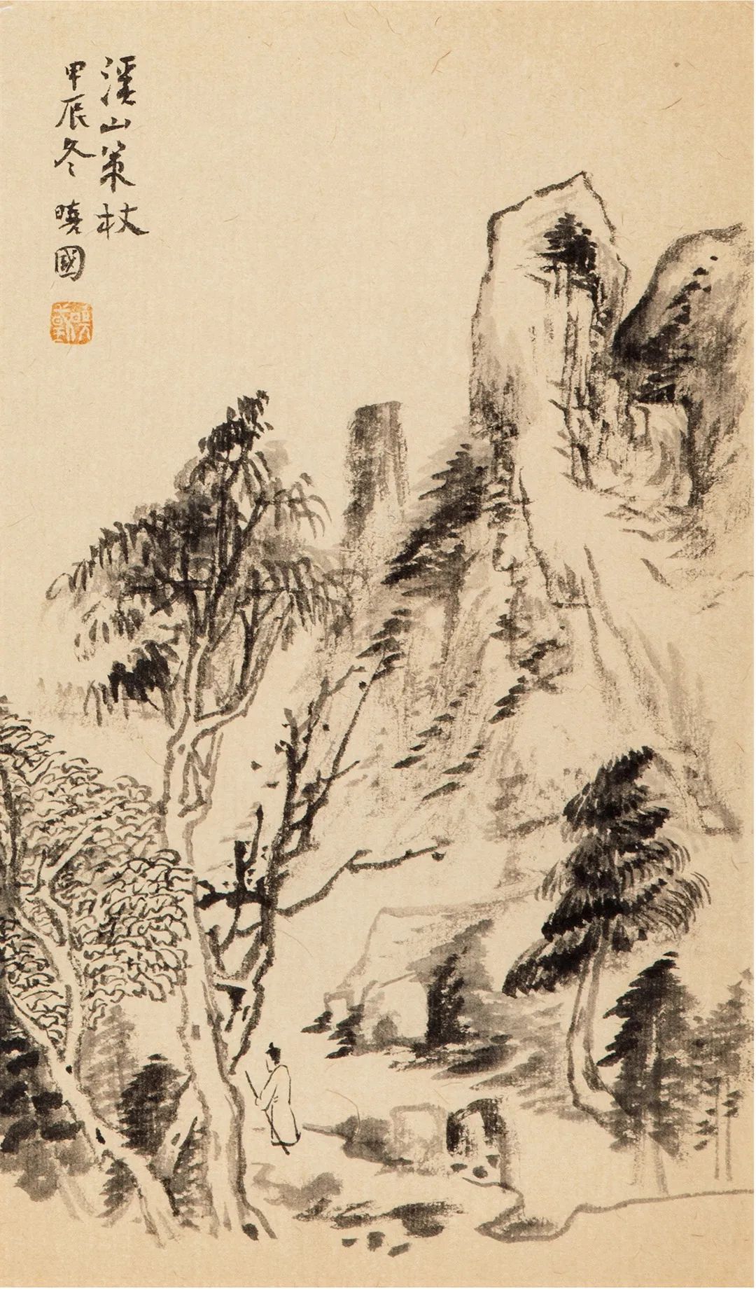溪山策杖-30x17cm-纸本水墨-2025