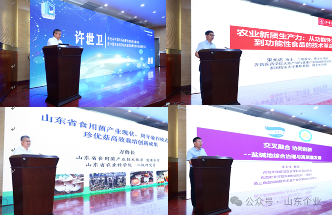 会议邀请中国工程院院士、国家农业信息化工程技术研究中心主任、国家农业智能装备工程技术研究中心首席专家赵春江作了题为《新质生产力赋能智慧农业发展》的主旨报告,农业农村部市场预警专家委员会秘书长、原中国农业科学院农业信息研究所所长兼党委书记许世卫作了《农业数字化转型与生态协调发展》的报告,俄罗斯工程院外籍院士、格鲁吉亚国家科学院外籍院士、齐鲁医药学院天然产物与健康创新研究院院长宋元达作了《农业新质生产力:从功能性农业到功能性食品的技术革命》的报告,山东省食用菌产业技术体系首席专家、省农业科学院二级研究员万鲁长,青岛大学教授、黄三角盐碱地现代农业产业创新研究院院长牛玉生也分别作了《新质生产力推动食用菌全产业链发展》《交叉融合 协同创新--盐碱地综合治理与高质量发展》的报告。